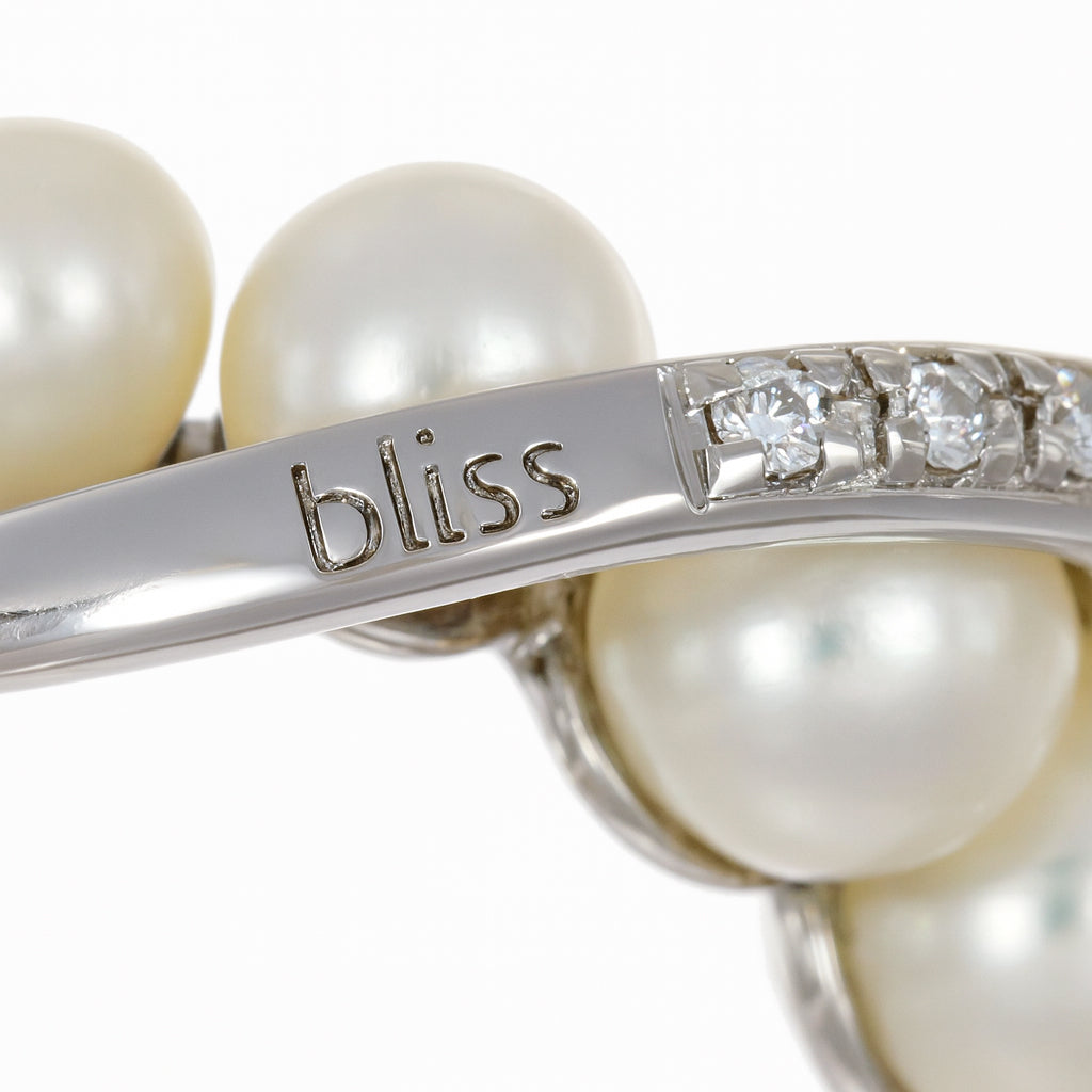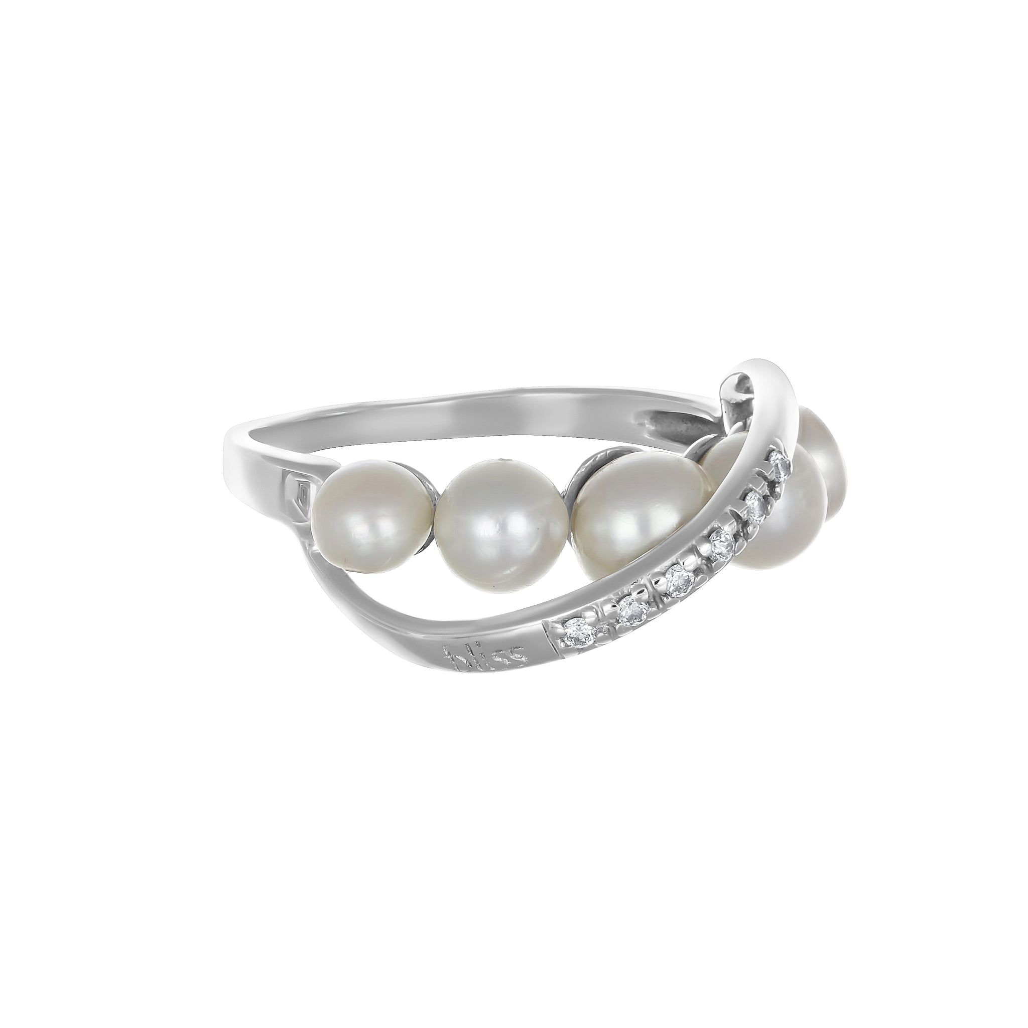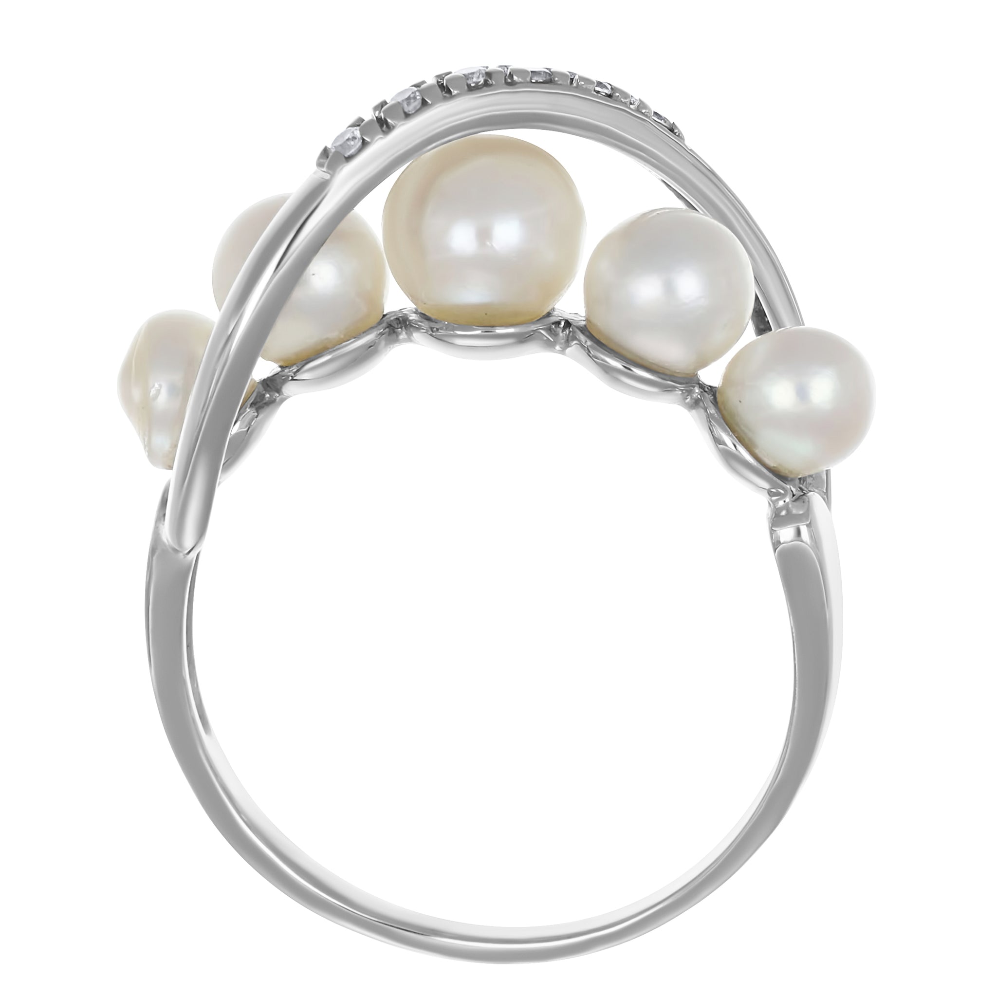 Anello in Oro bianco 18 carati con n 6 Diamanti da 0.06 Ct tot e n 1 Perla Akoya da 5.70 mm n 2 da 4.85 mm e n 2 da 4.40 mm