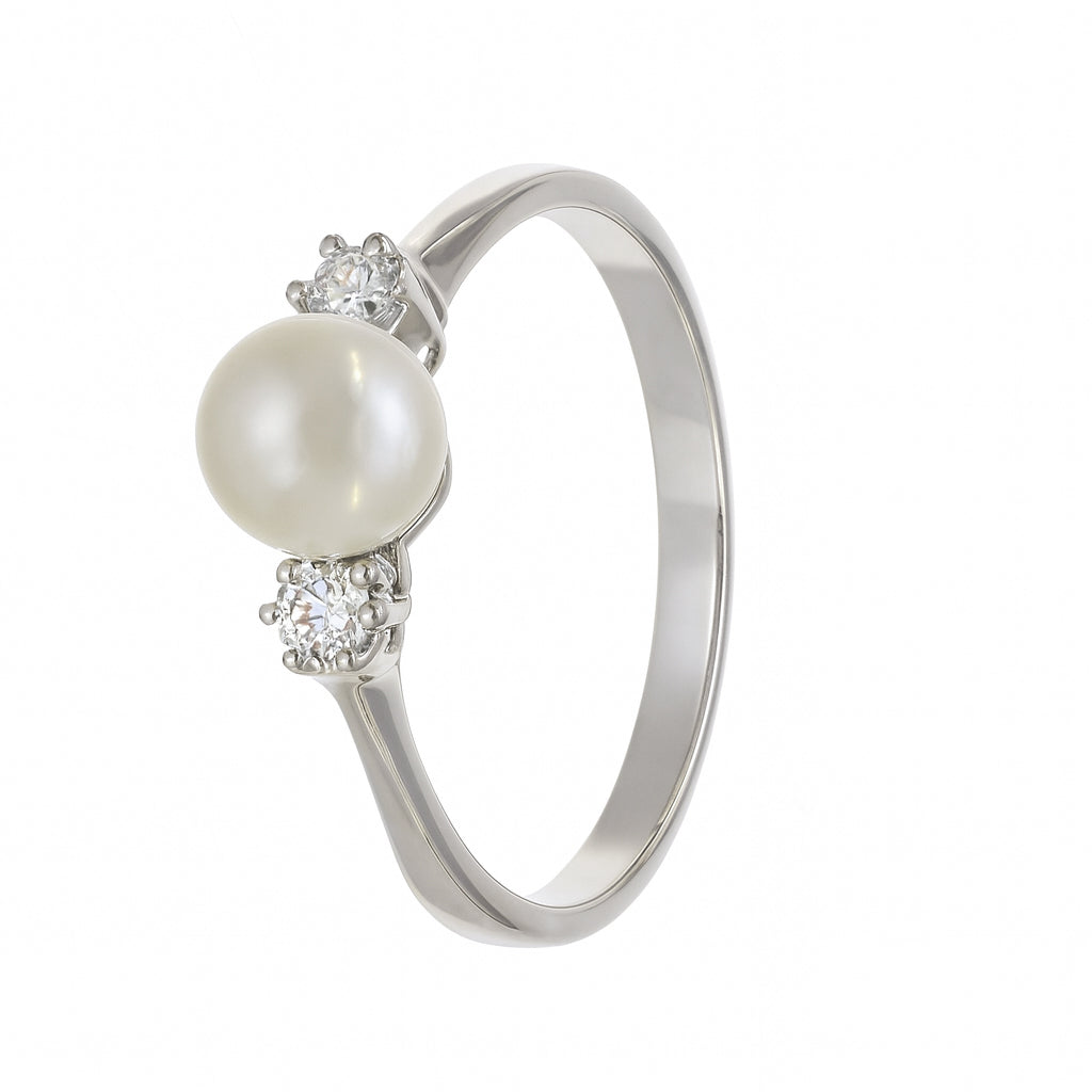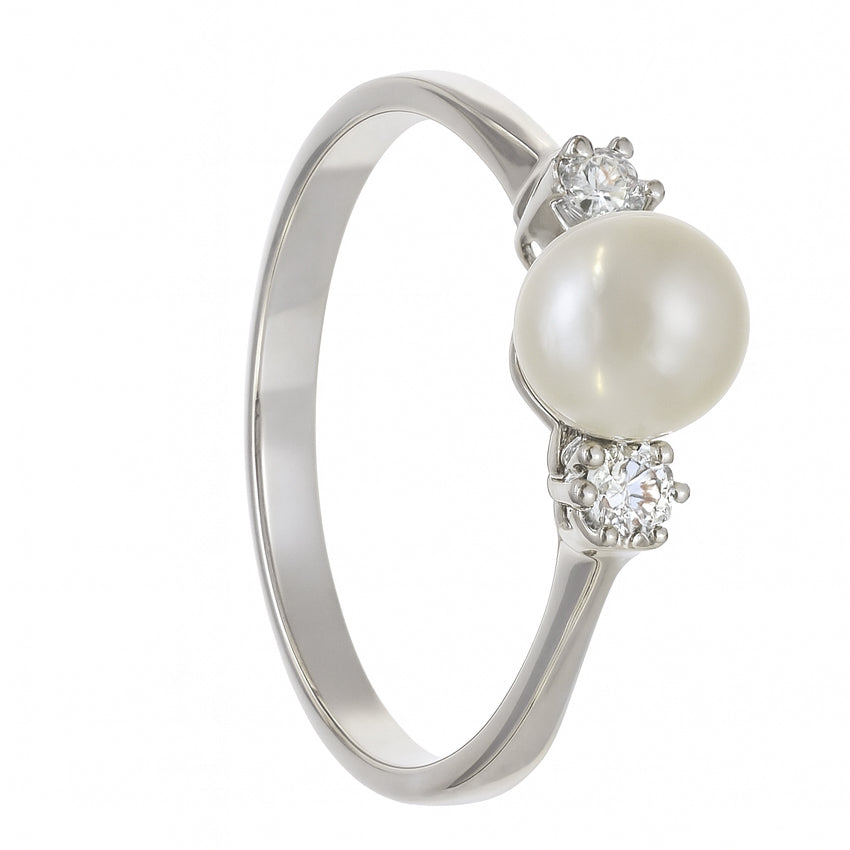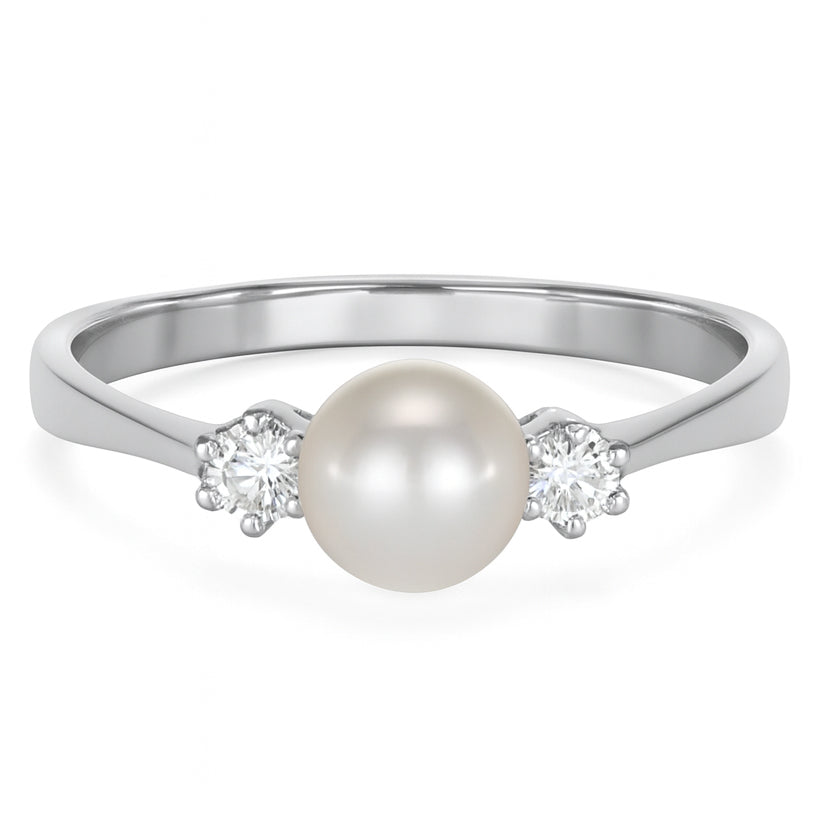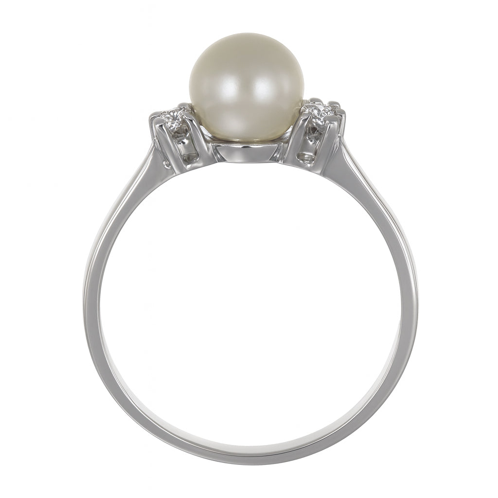 Anello in oro Bianco 18 carati con n 1 Perla Akoya 6.90 mm e n 2 Diamanti da 0.24 Ct tot