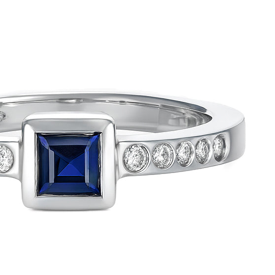 Anello - 18 carati Oro bianco - 0.25ct. tw. Zaffiro - Diamante