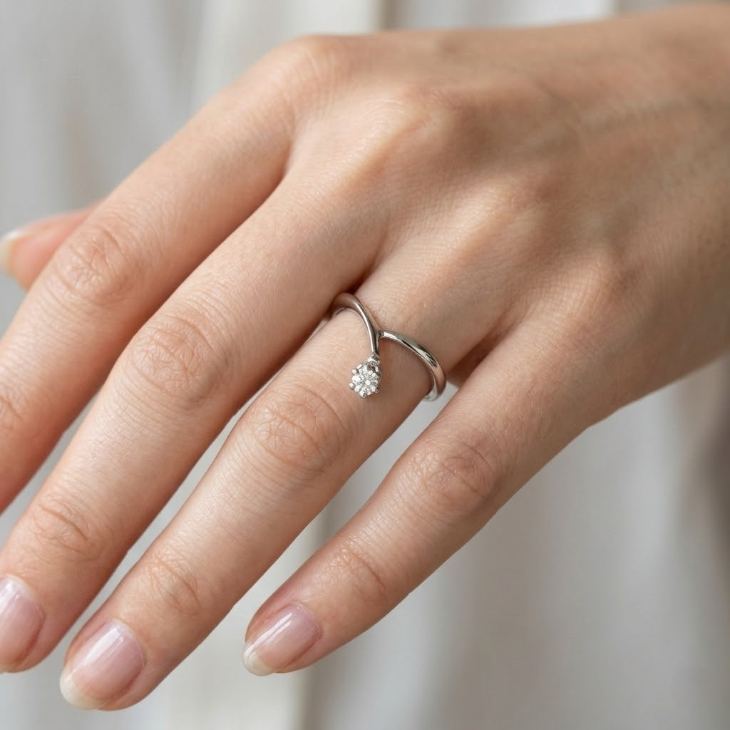 Anello in Oro Bianco 18 carati con n 1 Diamante da 0.10 Ct