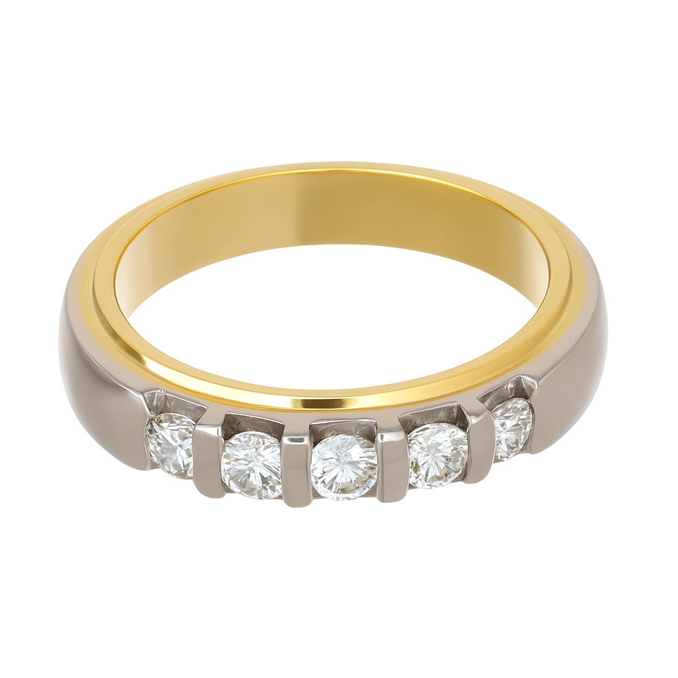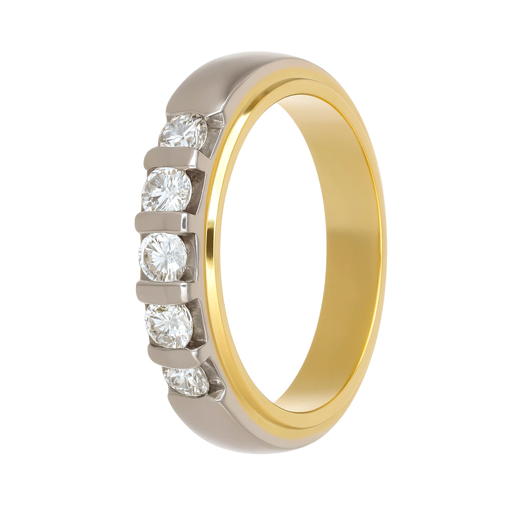 Anello in Oro Giallo, Oro bianco 18 carati con n 5 Diamanti da 0.40 Ct tot