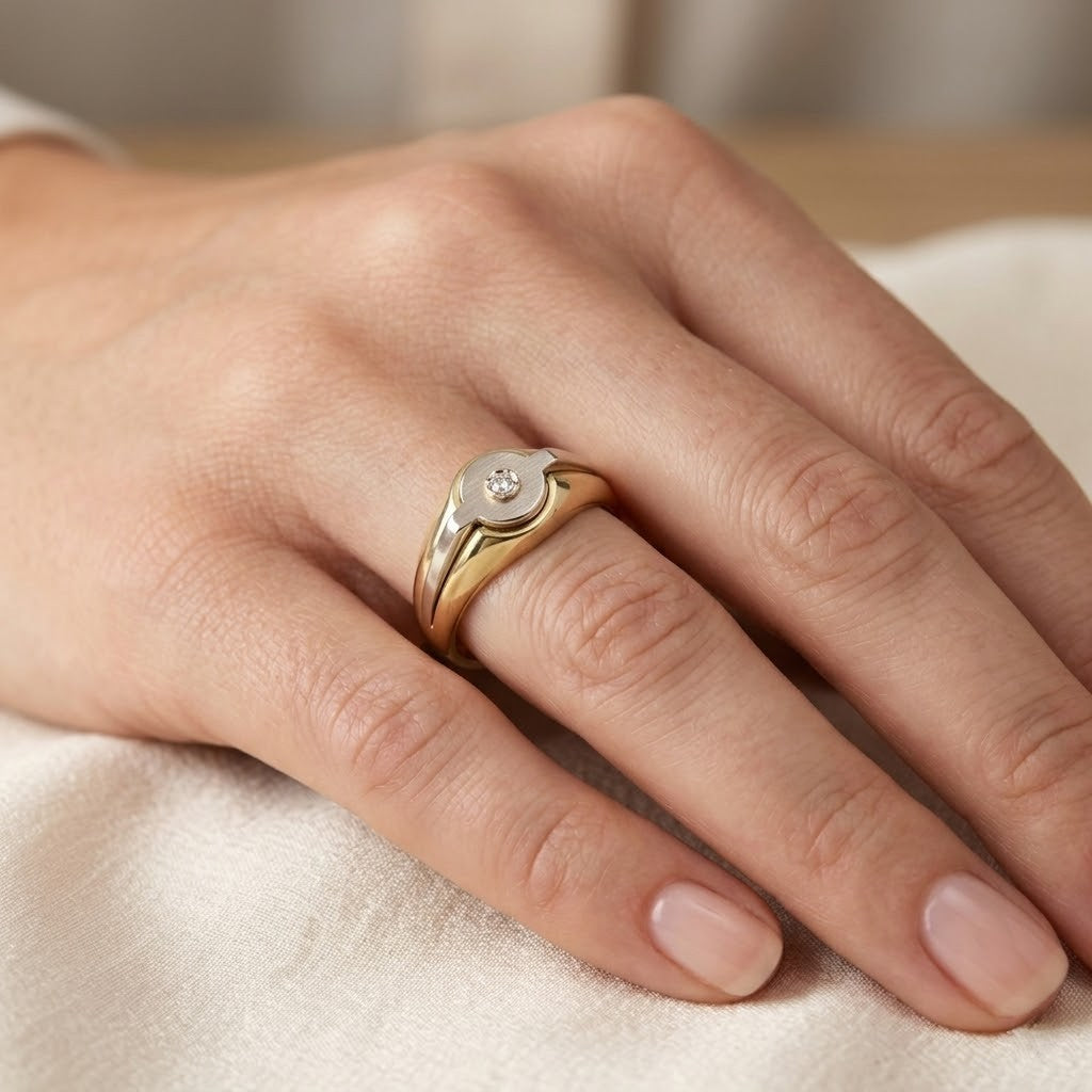 Anello - 18 carati Oro giallo, Oro bianco - 0.03ct. tw. Diamante (Naturale)