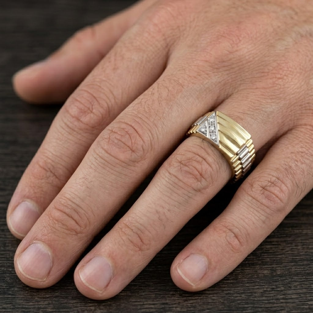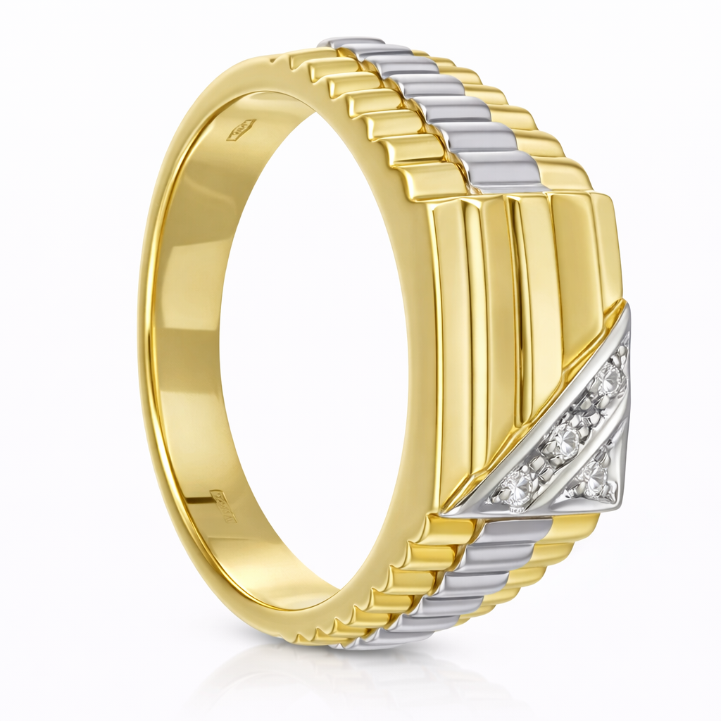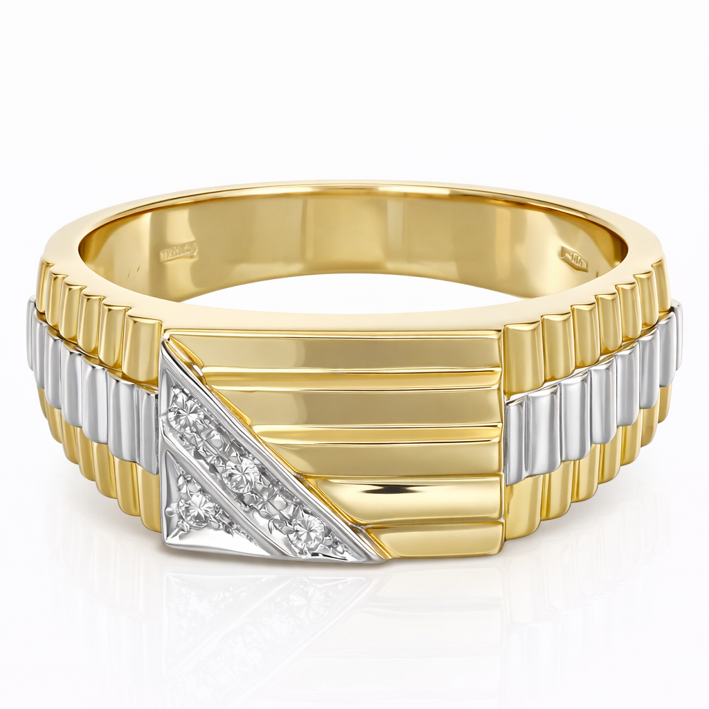 Anello - 18 carati Oro giallo, Oro bianco - 0.08ct. tw. Diamante (Naturale)