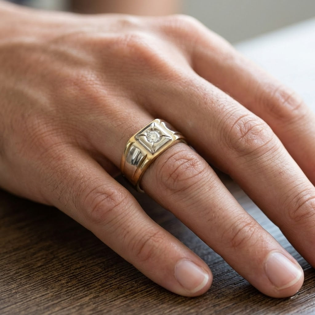 Anello in Oro giallo , Oro Bianco 18 carati con n 1 Diamante 0.25 Ct