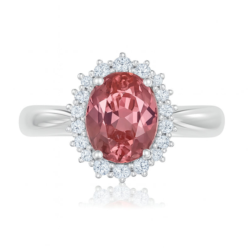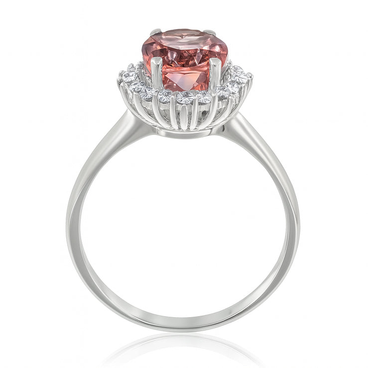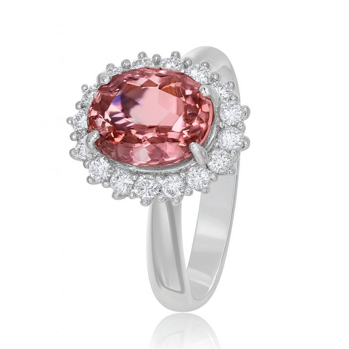 Anello in oro bianco 18 carati con n 1 Tormalina da 2.57 Ct e n 16 Diamanti da 0.32 Ct tot