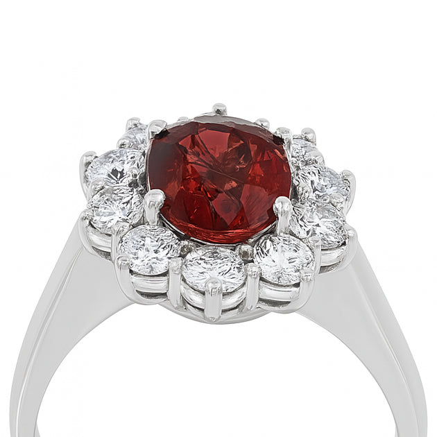 Anello in oro Bianco 18 carati con n 1 Tormalina rosa da 2.00 Ct e n 10 Diamanti da 1.30 Ct tot