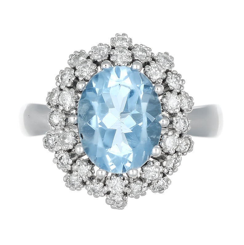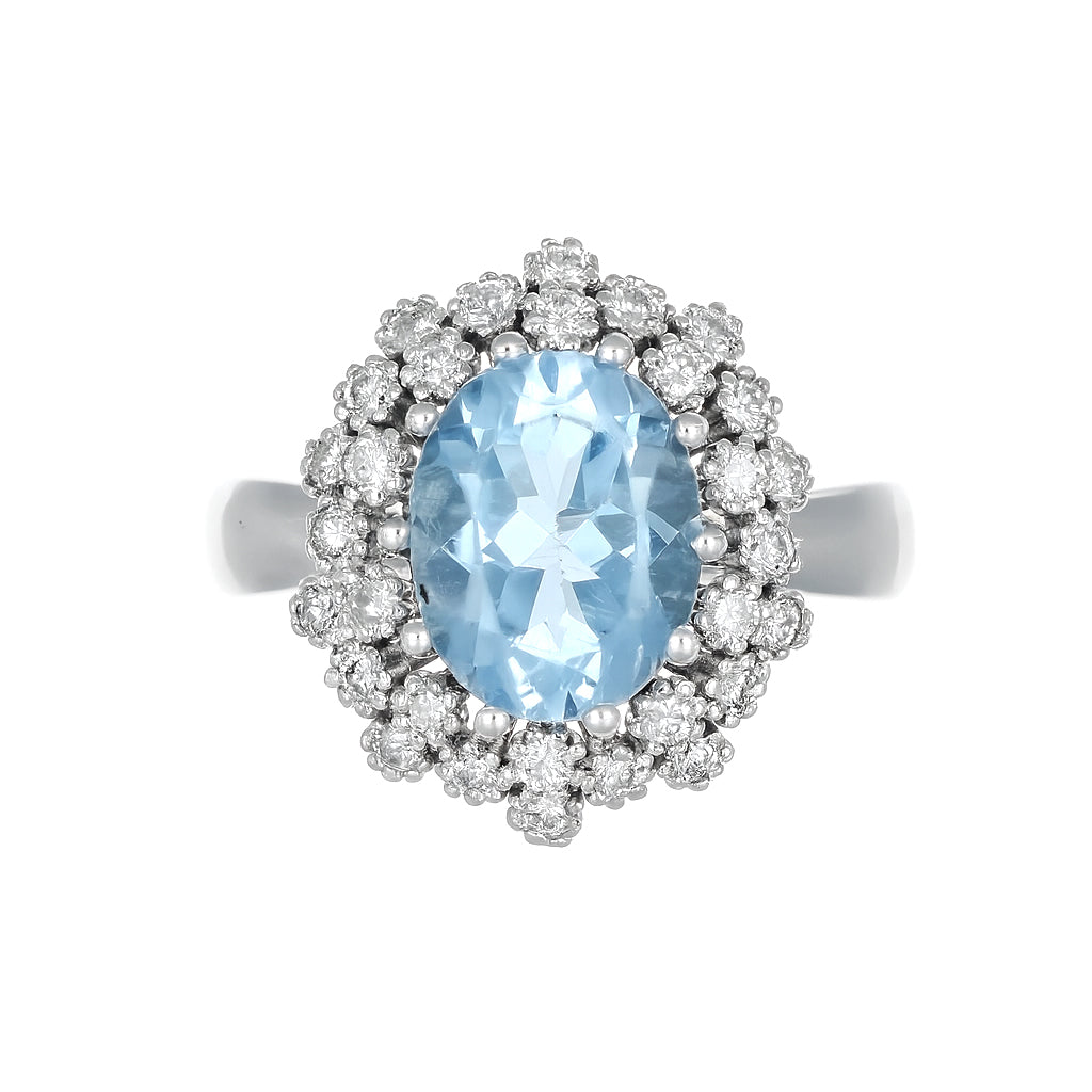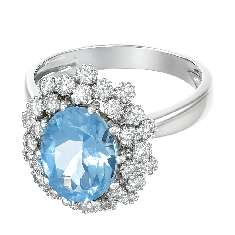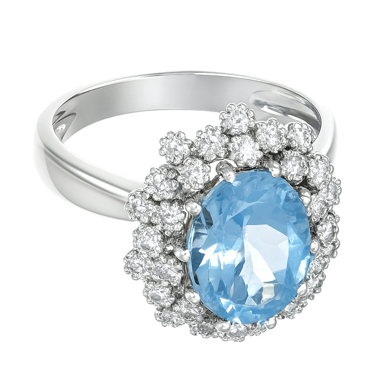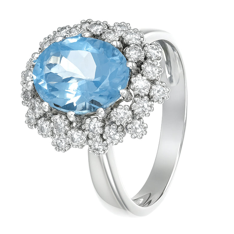 Anello in oro bianco 18 carati con n 1 Topazio da 3.09 Ct tot e n 33 Diamanti da 0.66 Ct tot