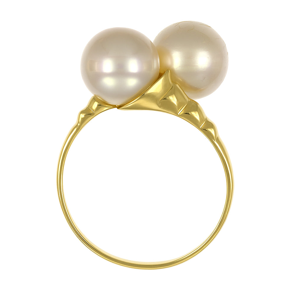 Anello in Oro giallo 18 carati con n 2 Perle Akoya da 9.00 mm