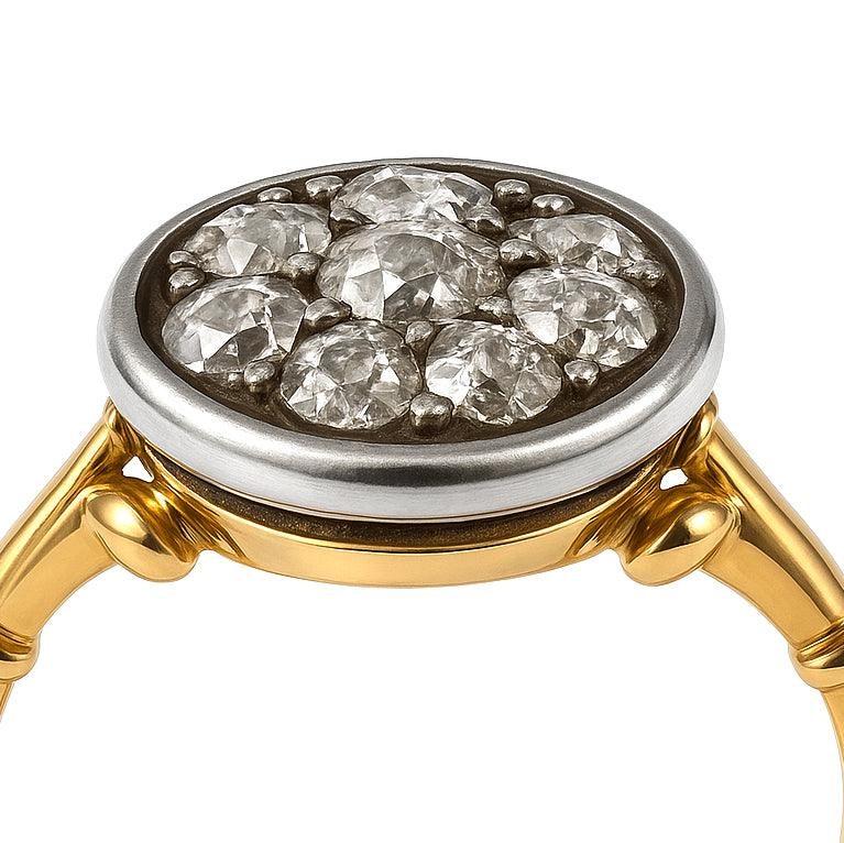 Anello in Oro giallo 18 carati e Argento 800 con n 9 Diamanti da 0.81 Ct tot