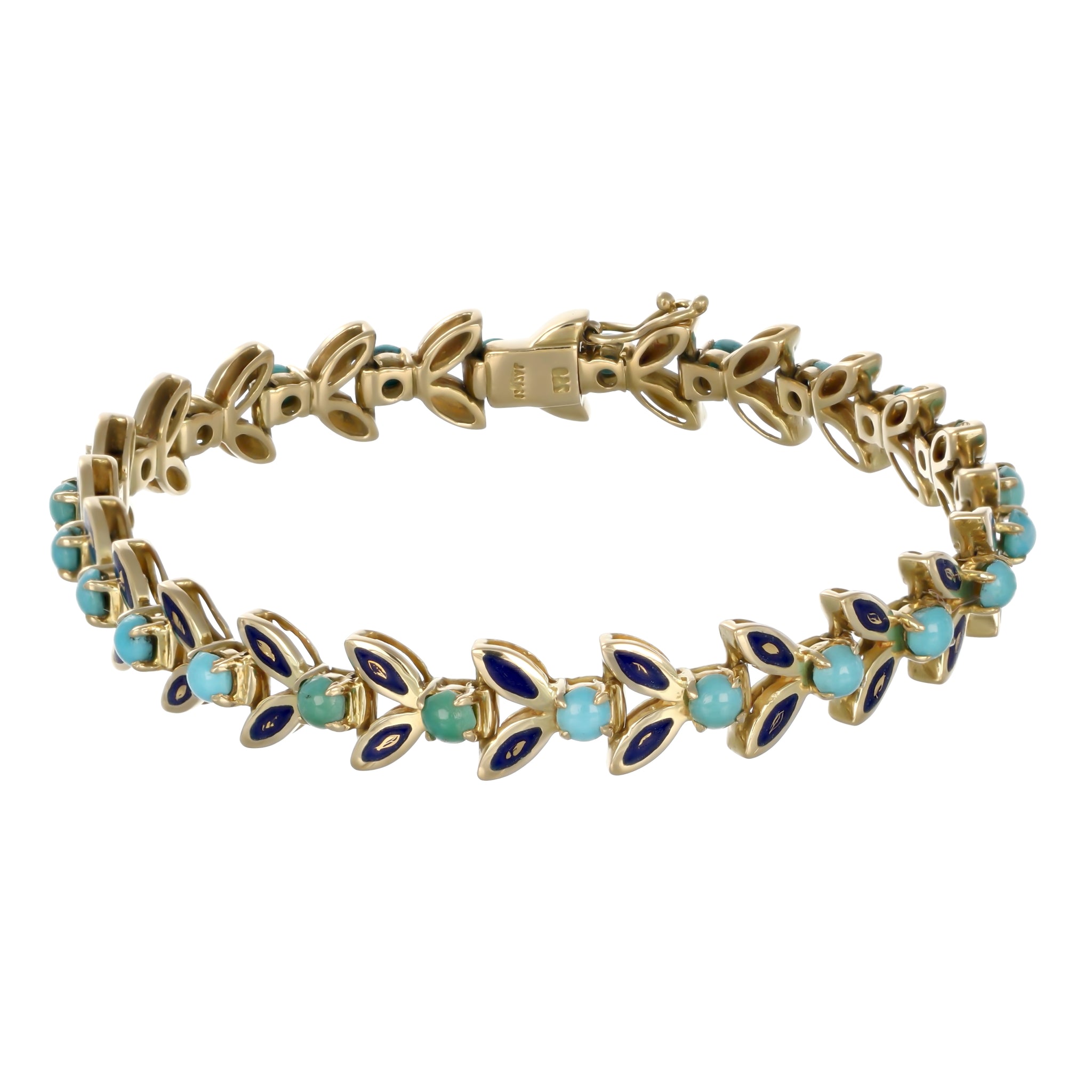 Bracciale in Oro Giallo 18 carati con superficie smaltata e turchesi