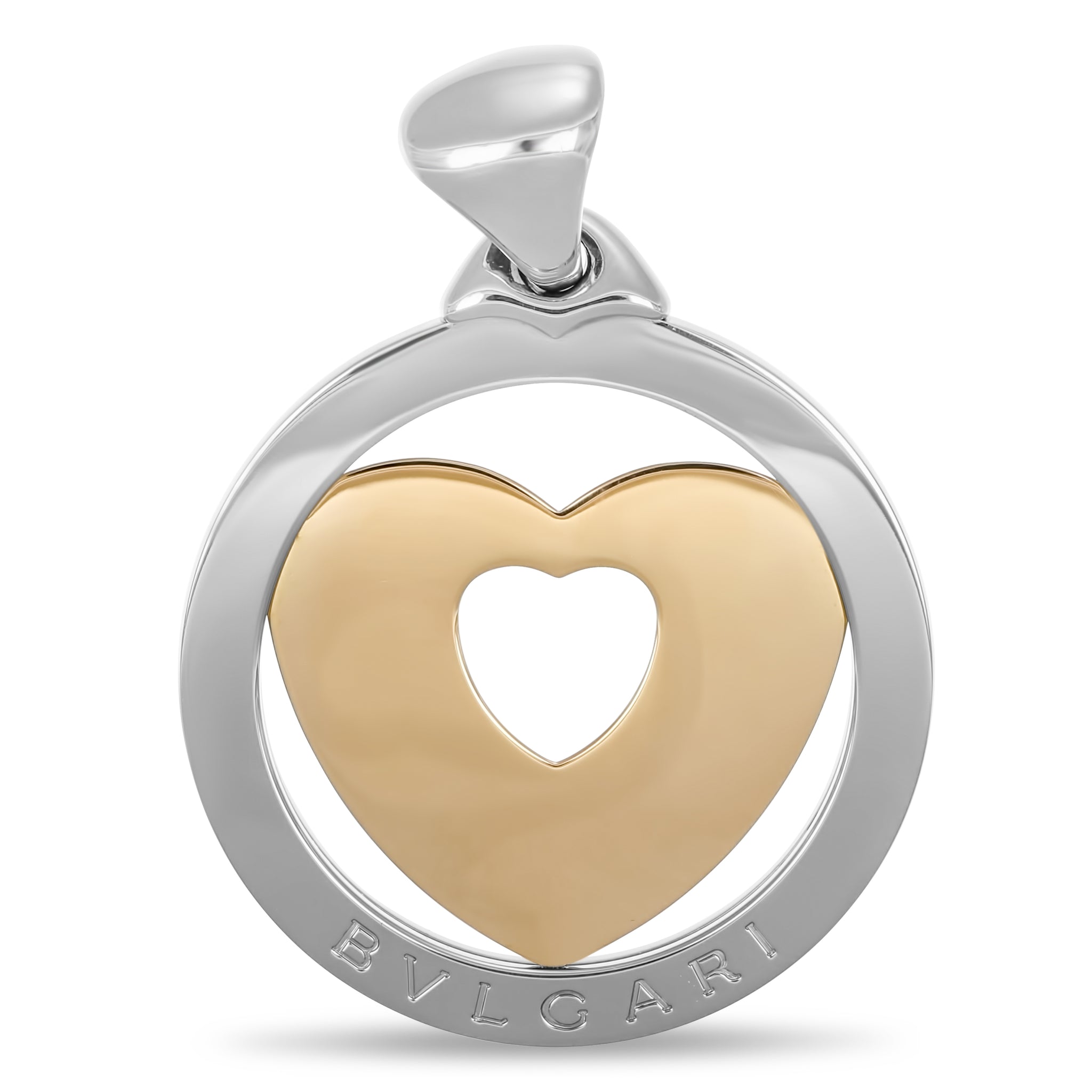 Ciondolo a forma di cuore di Bvlgari in acciaio inossidabile e oro giallo 18 carati