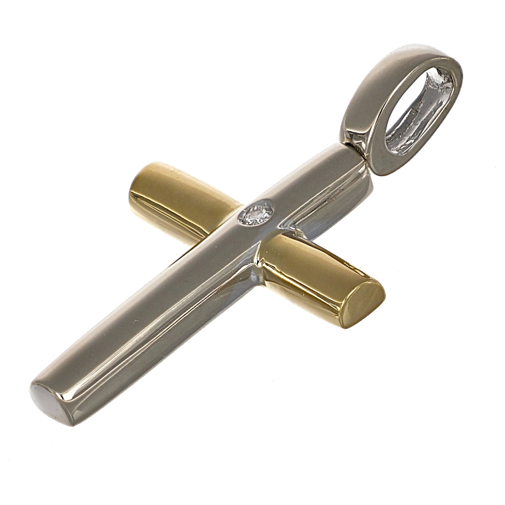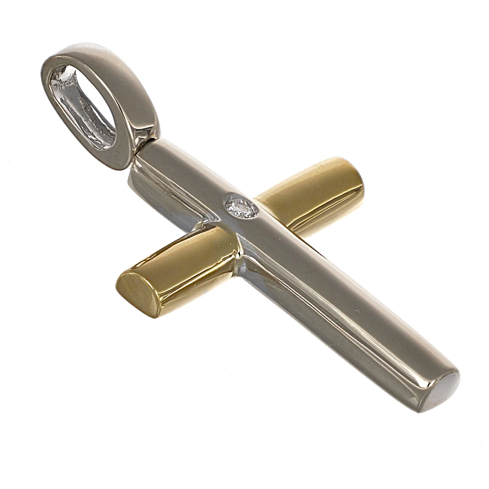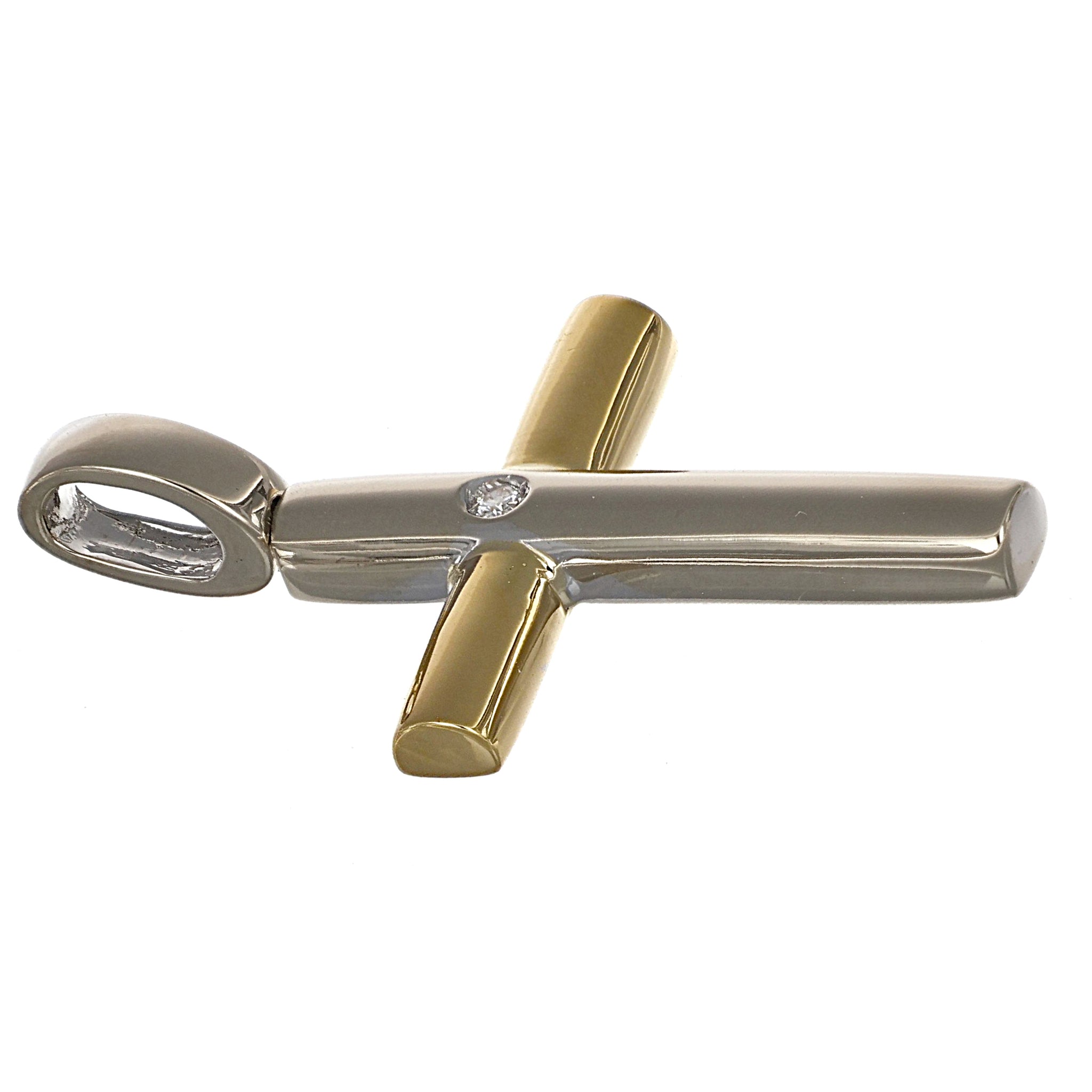 Ciondolo in Oro giallo ,Oro Bianco 18 carati con n 1 Diamante da 0.03 Ct