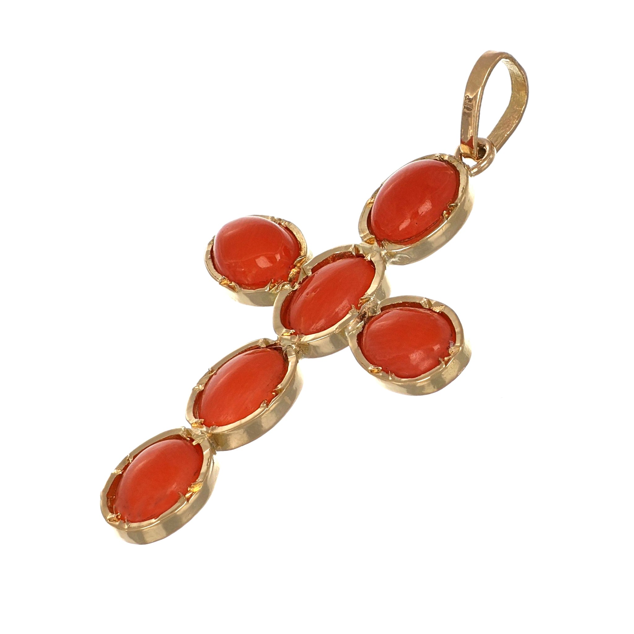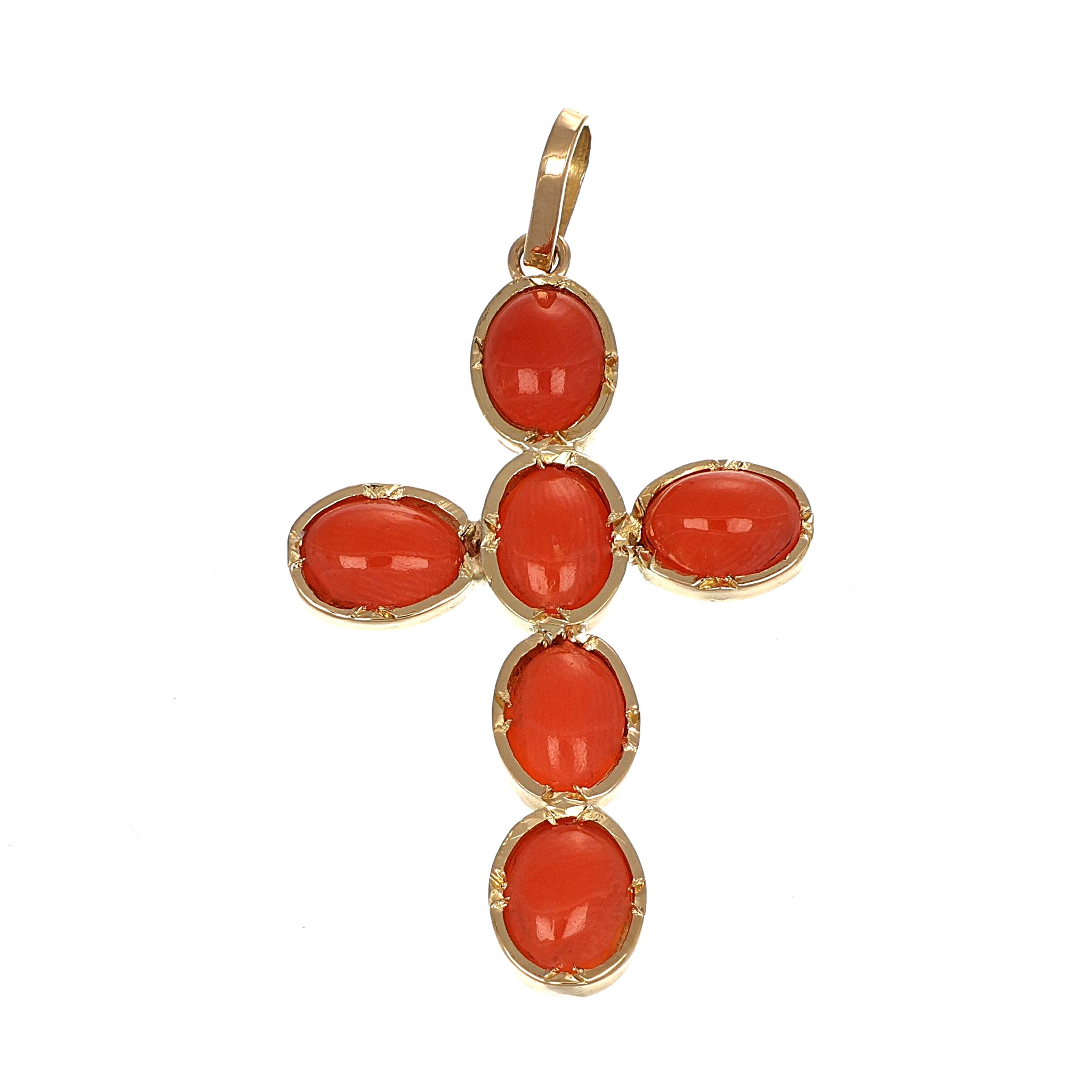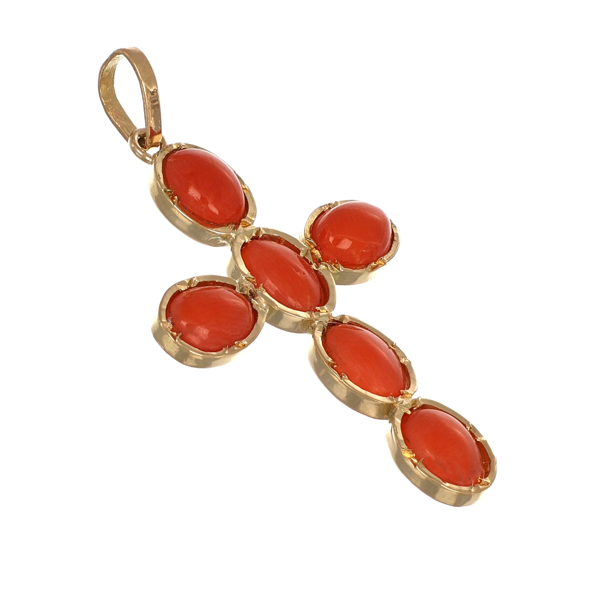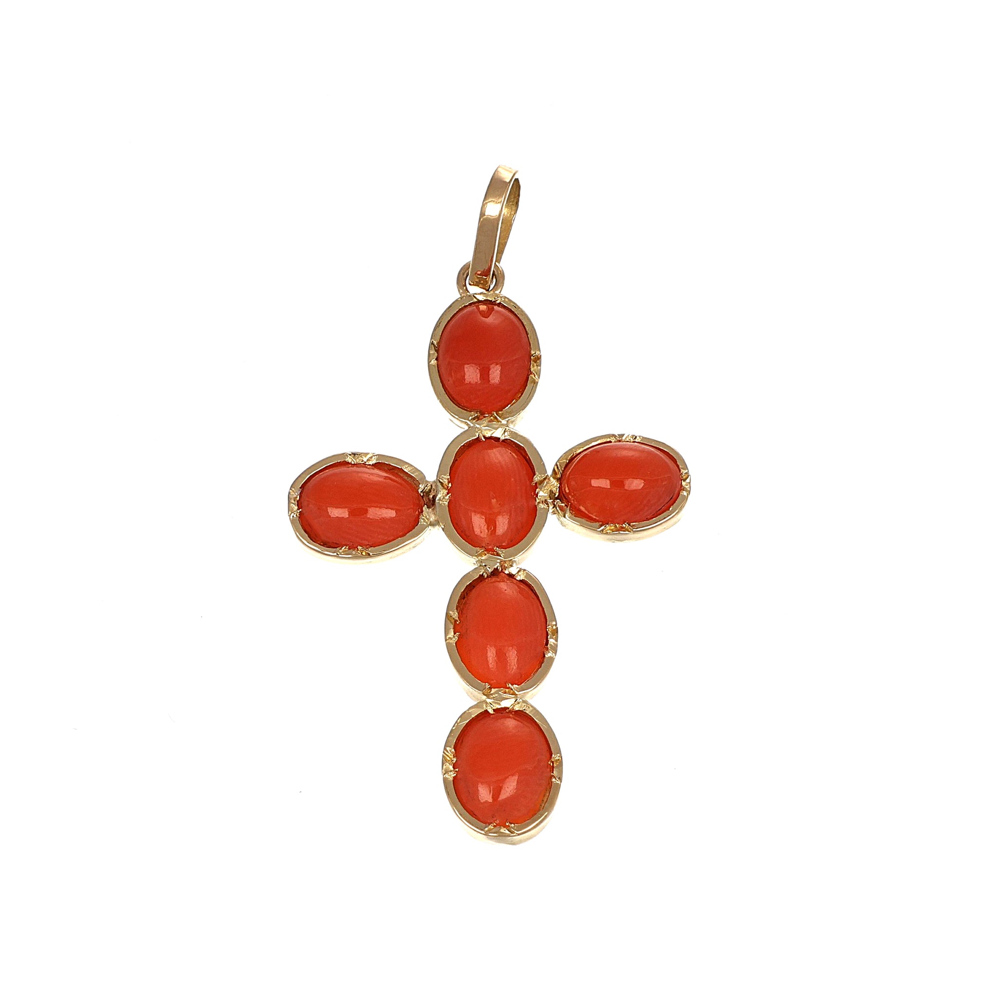 Ciondolo in Oro giallo 18 carati con n 6 coralli rossi del mediterraneo 7.50 x 5.40 mm