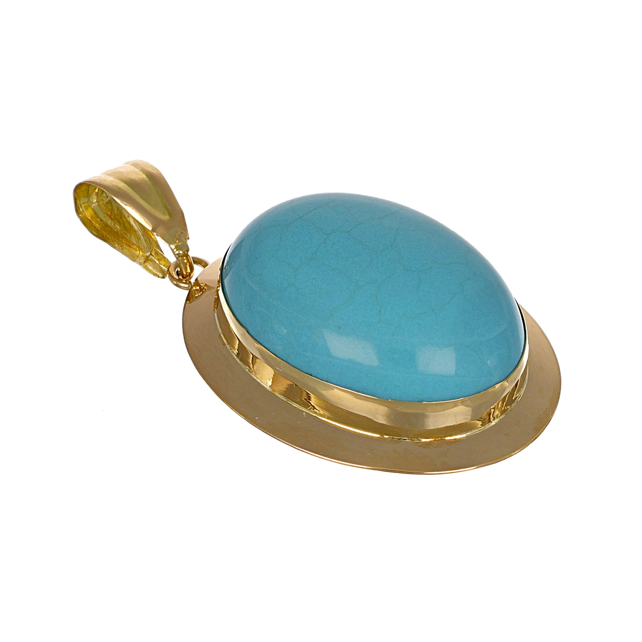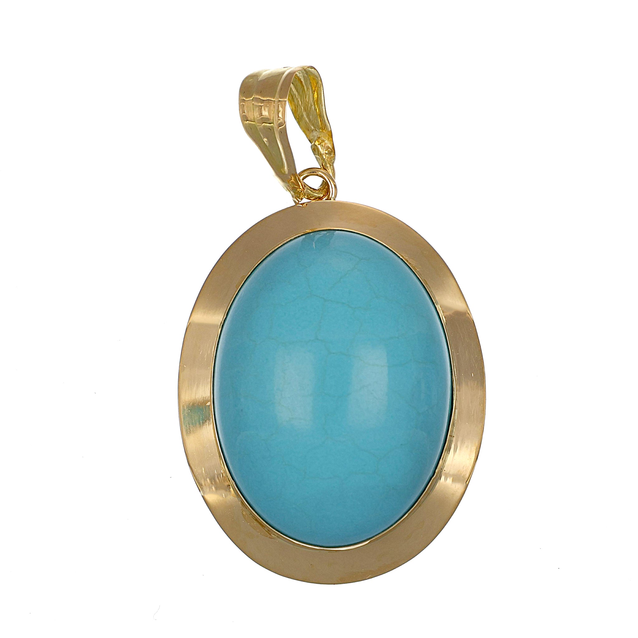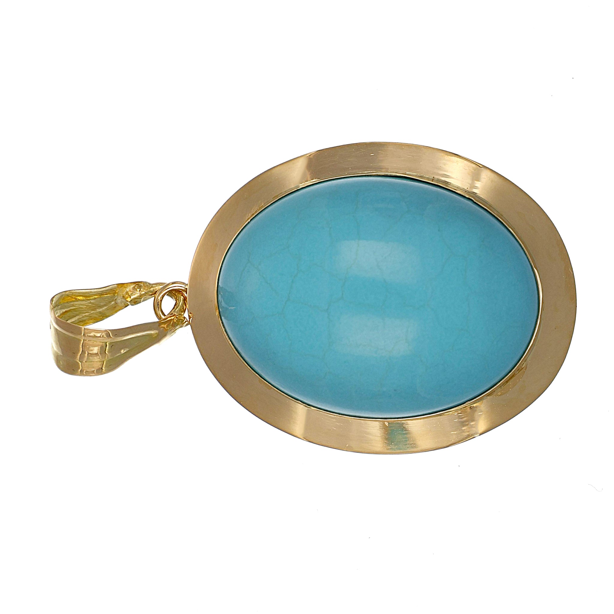 Ciondolo in Oro giallo 18 carati con pasta di Turchese da 20.0 x 15.00 mm