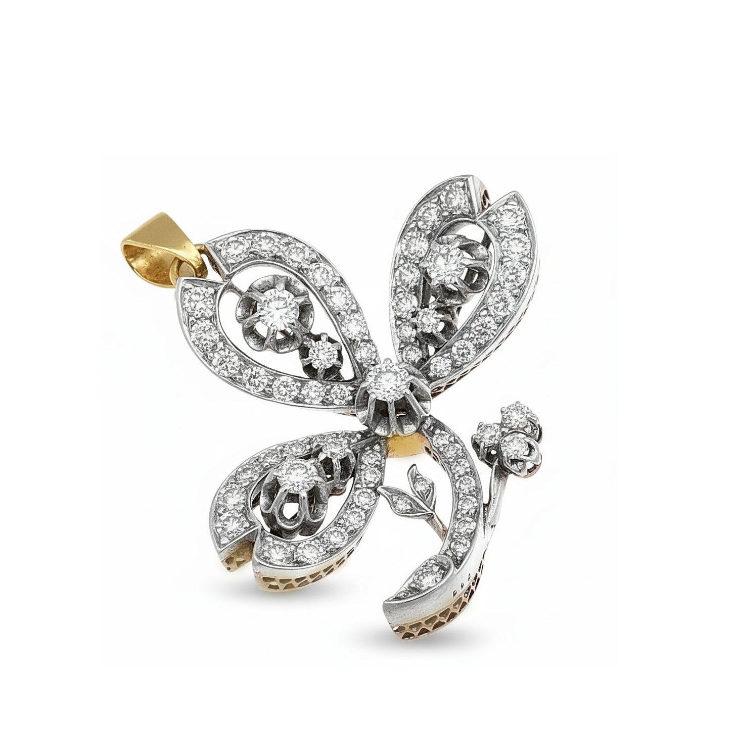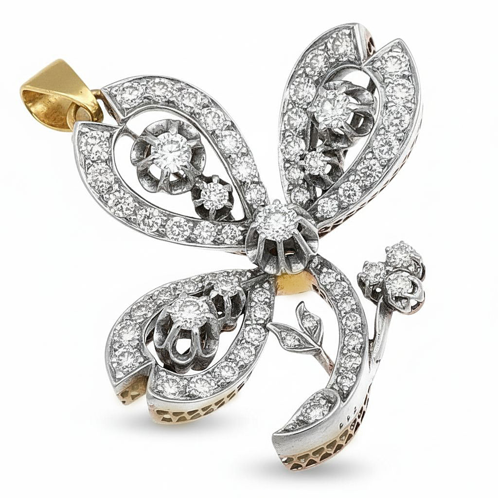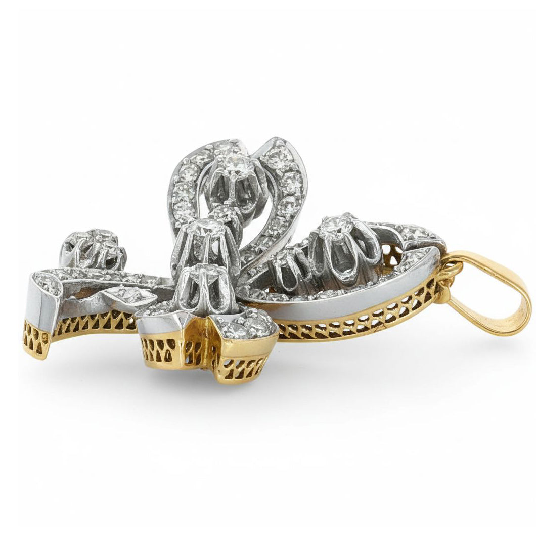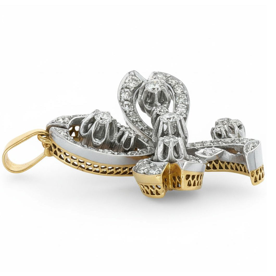 Ciondolo in Oro giallo 18 carati e argento 800 con n 62 Diamanti da 1.74 Ct tot