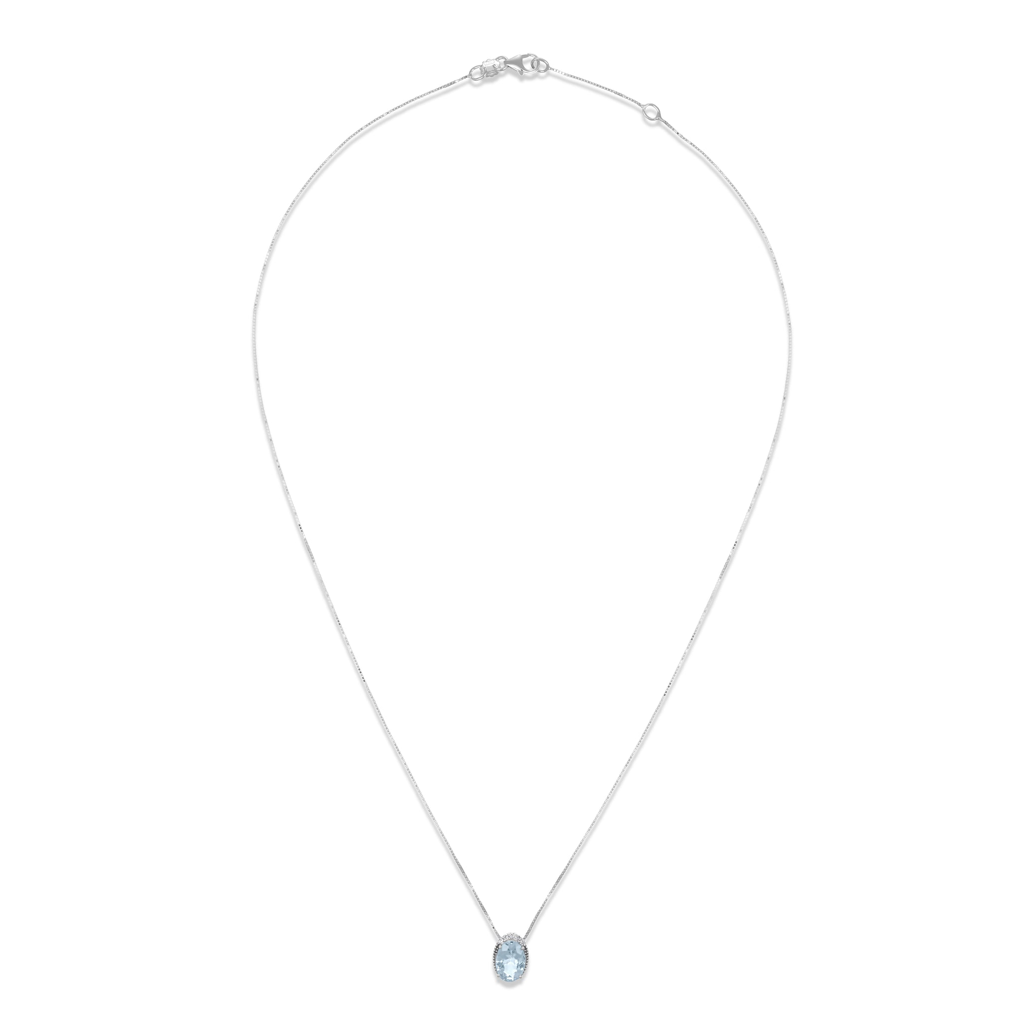 Collana con Ciondolo in oro bianco 18 carati con n 1 Acquamarina 0.82 Ct e n 5 Diamanti da 0.10 Ct tot