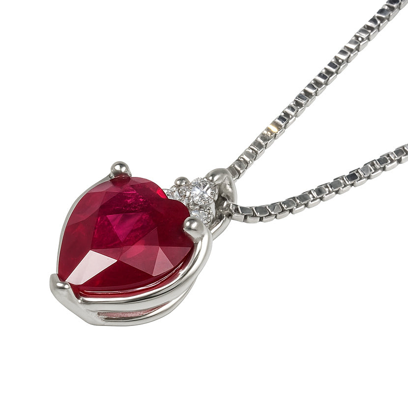 Collana con Ciondolo in oro bianco 18 carati con n 1 Rubino 1.07 Ct e n 3 Diamanti da 0.03 Ct tot