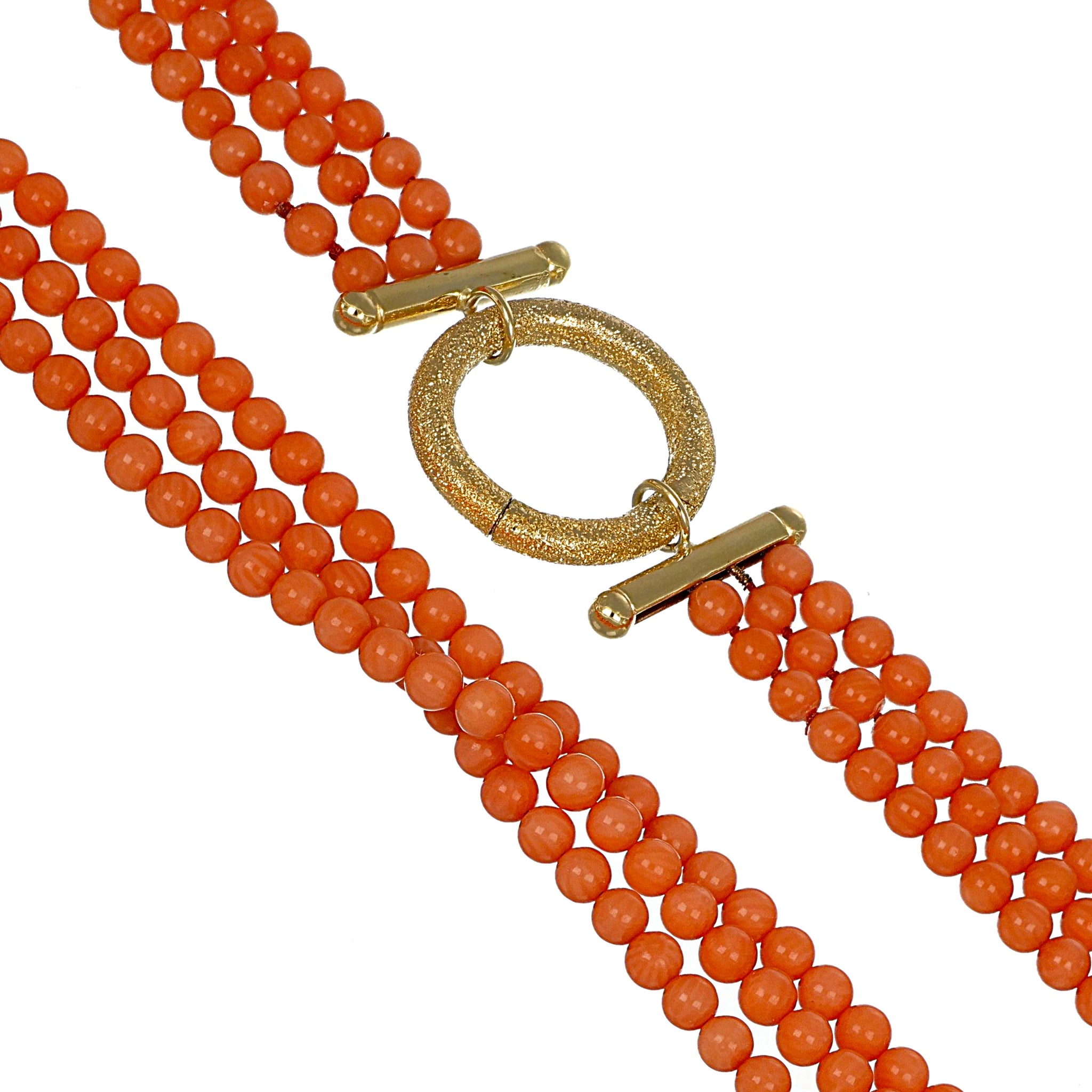 Collana di con Coralli rossi del mediterraneo da 4.66 mm con ciondolo in Oro giallo 18 carati