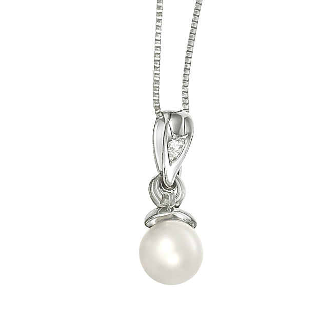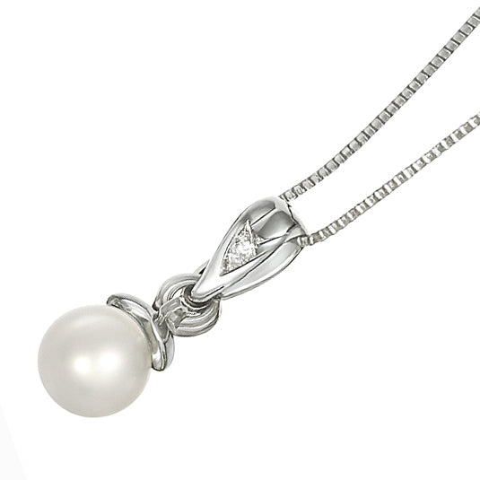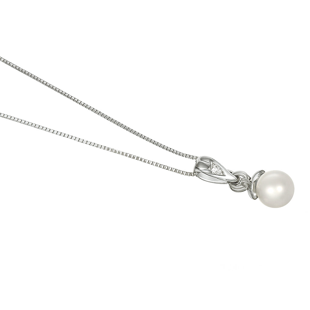 Collana con Ciondolo in Oro bianco 18 carati con n 1 Perla Akoya 7.20 mm e n 1 Diamante da 0.015 Ct tot