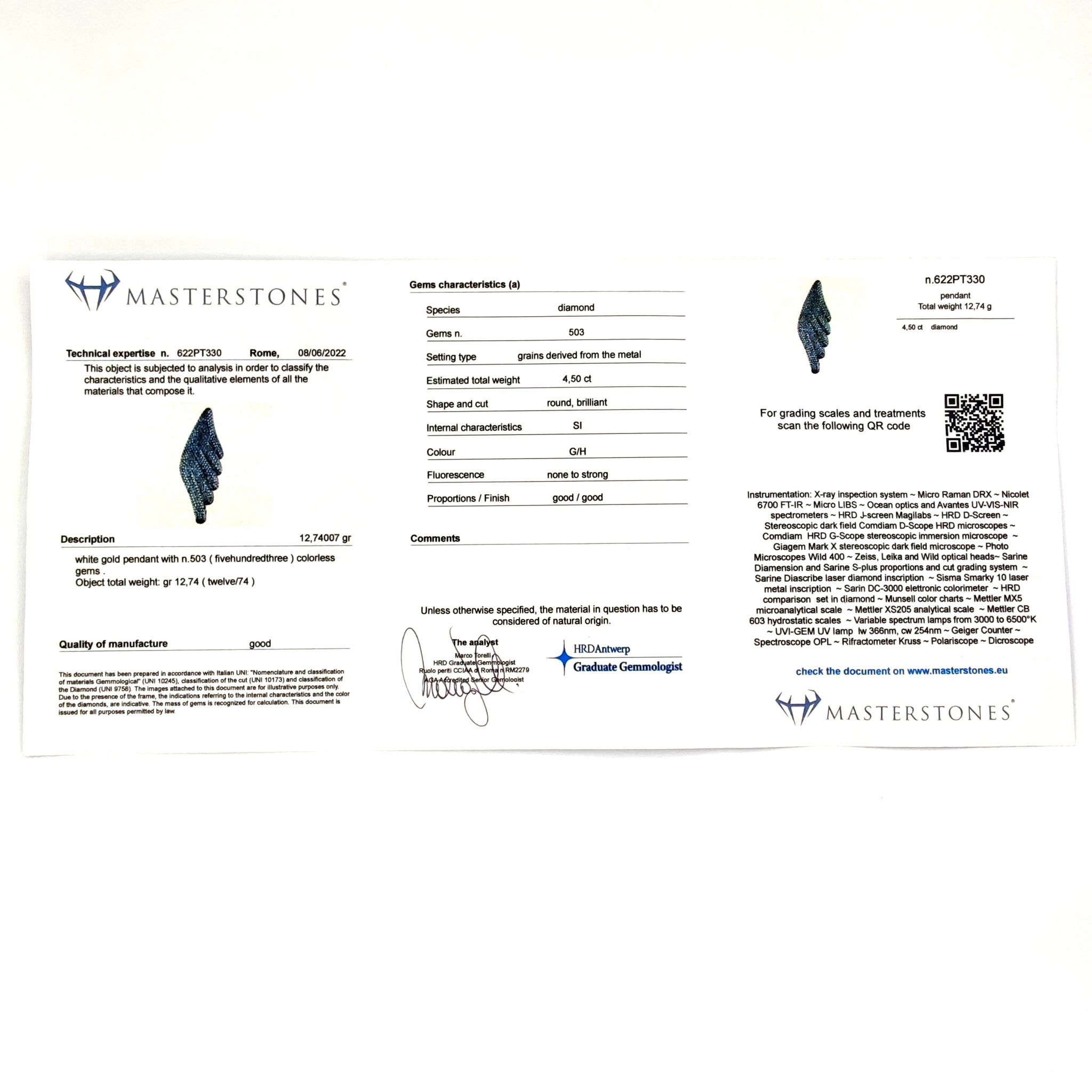 Collana con Ciondolo in oro bianco 18 carati con n 503 Diamanti da 4.50 Ct tot
