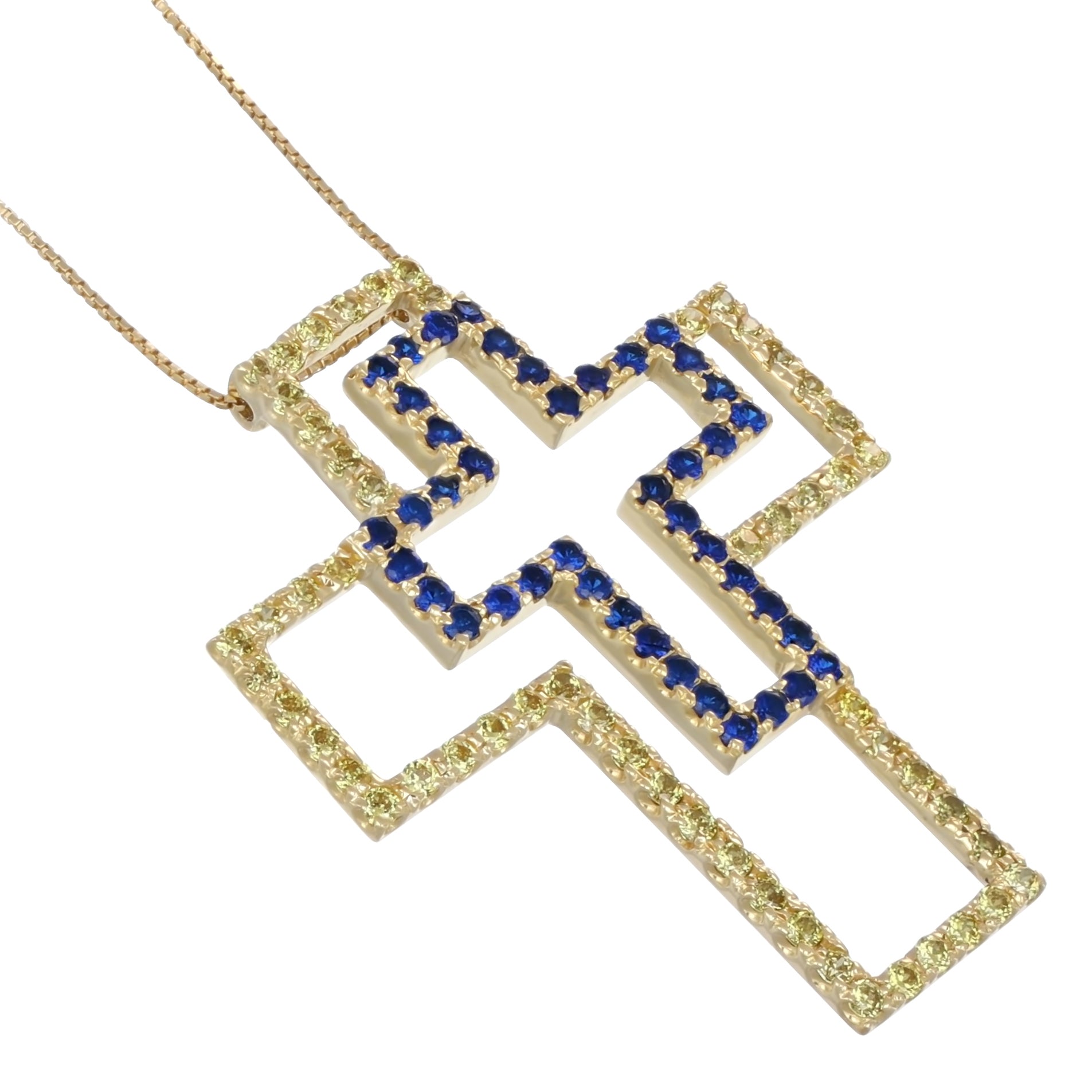 Collana in Oro Giallo 18 carati con n 42 Zaffiri da 0.63 Ct tot e n 56 Quarzi lemon da 0.84 Ct tot