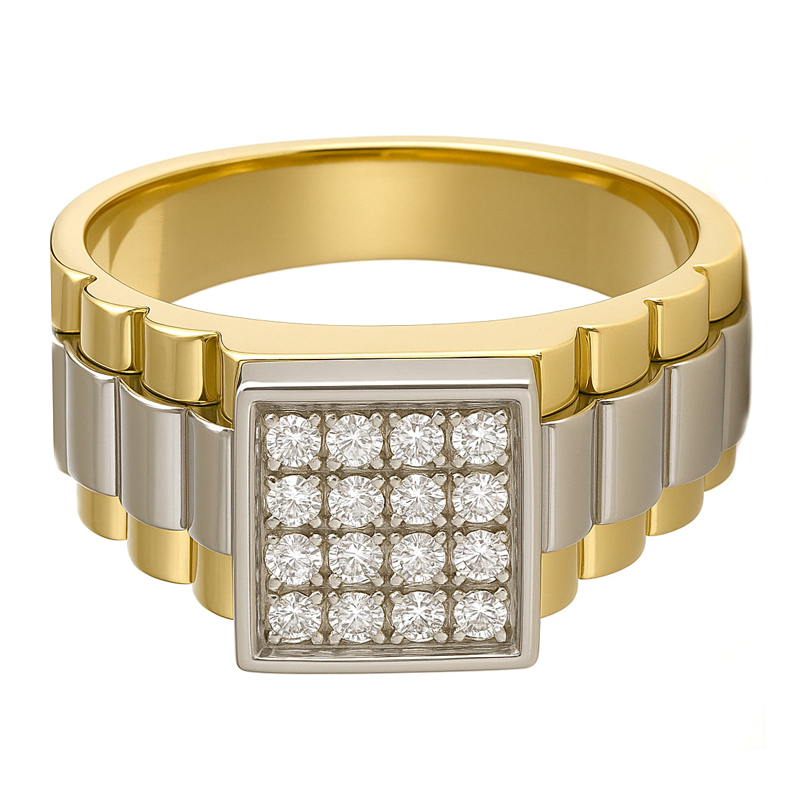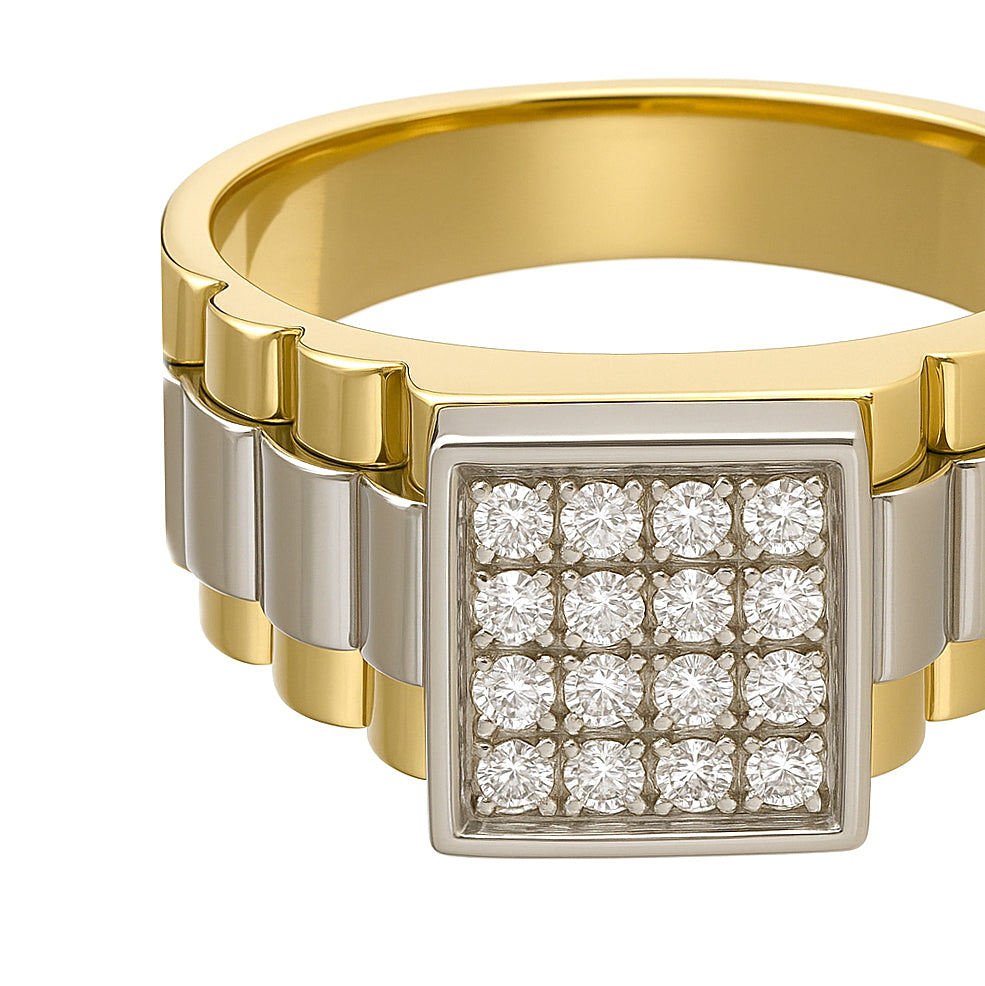 Anello in Oro Giallo , Oro bianco 18 carati con n 16 Diamanti da 0.24 Ct tot
