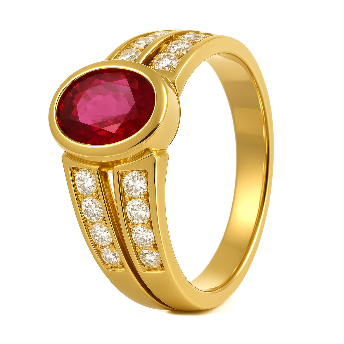 Anello - 18 carati Oro giallo - 1.50ct. tw. Rubino - Diamante