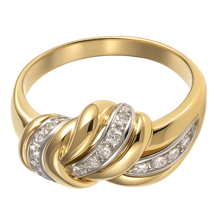 Anello in oro giallo , Oro bianco 18 carati con n 13 Diamanti da 0.13 Ct tot