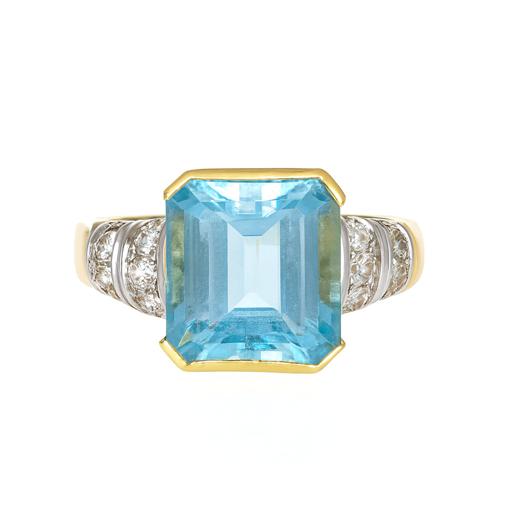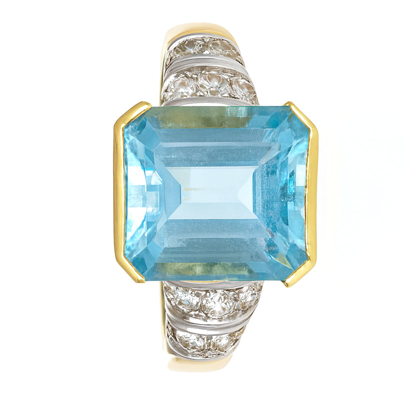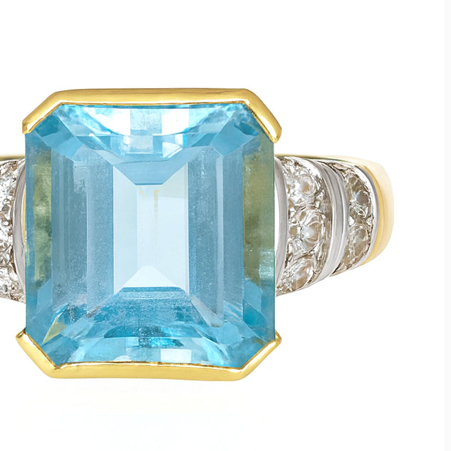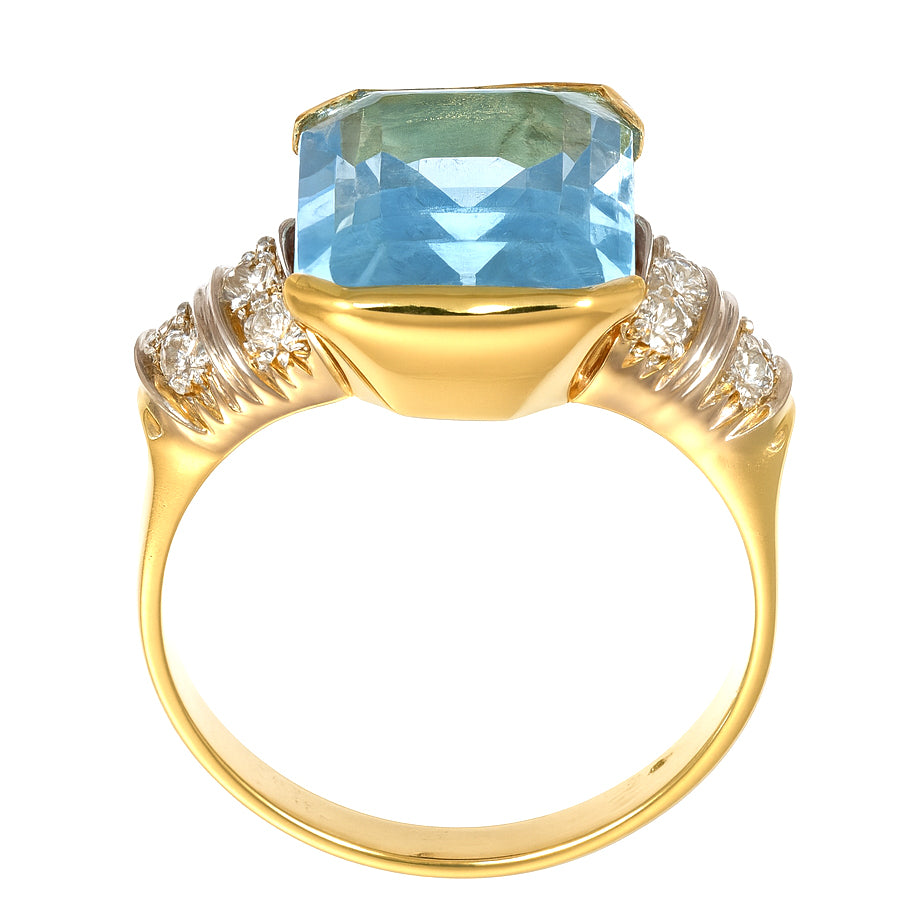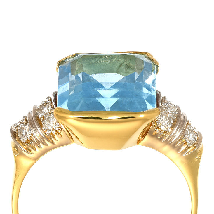Anello in oro giallo , Oro bianco 18 carati con n 1 Topazio da 4.75 ct e n 10 Diamanti da 0.20 Ct tot