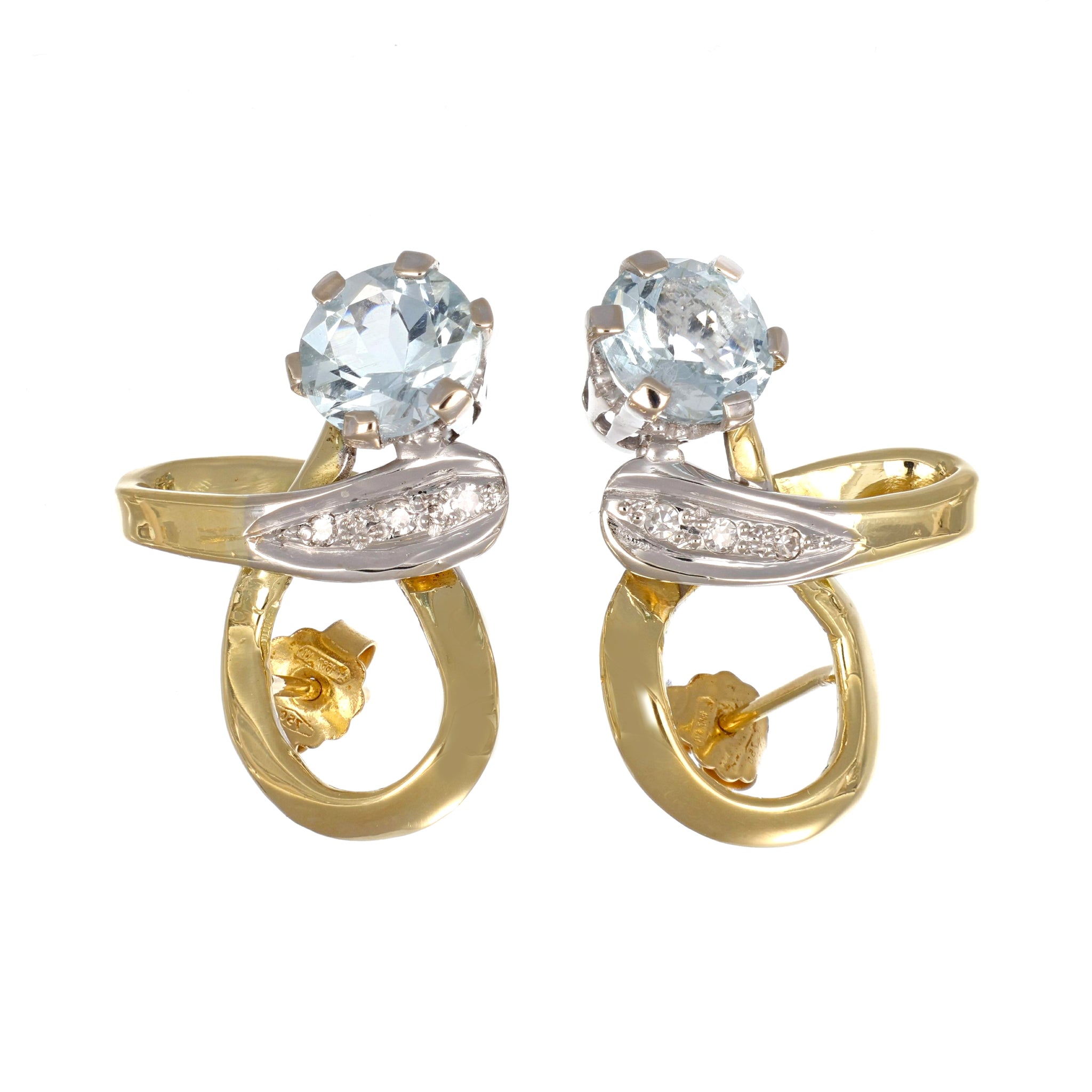Orecchini in Oro Giallo, Oro bianco 18 carati con n 2 Acquamarina da 4.00 Ct tot e n 6 Diamanti da 0.10 Ct tot