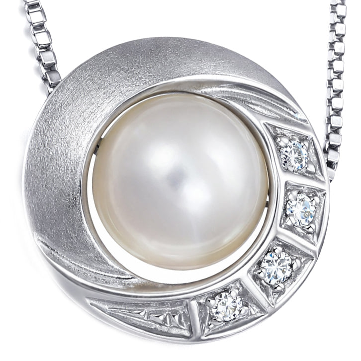Collana con Ciondolo in Oro Bianco 18 carati con n 1 Perla da 7.00mm e 4 Diamanti da 0.04 Ct tot