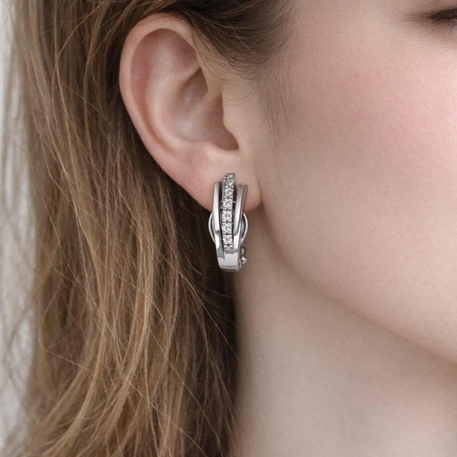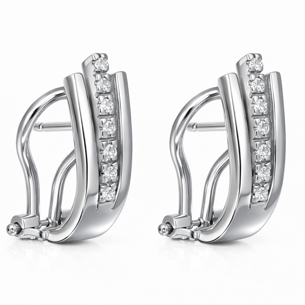 Orecchini in Oro Bianco 18 carati con n 14 Diamanti da 0.14 Ct tot