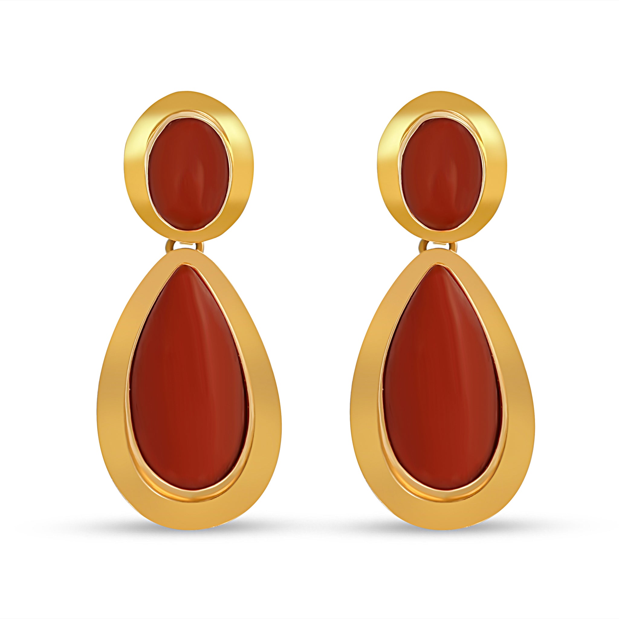Orecchini in oro giallo 18 carati con n 2 Corallo rosso del mediterraneo da 26.50 x 9.90 e n 2 da 29.80 x 21.56 mm