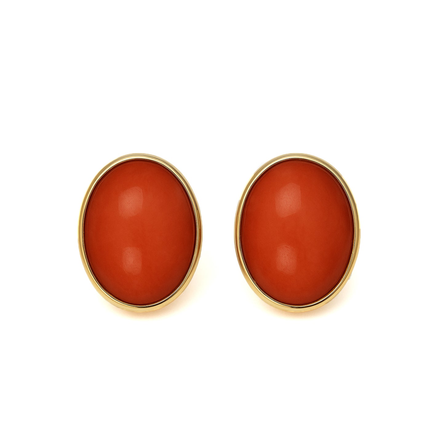Orecchini in oro giallo 18 carati con n 2 Corallo rosso del mediterraneo da 580 Ct to
