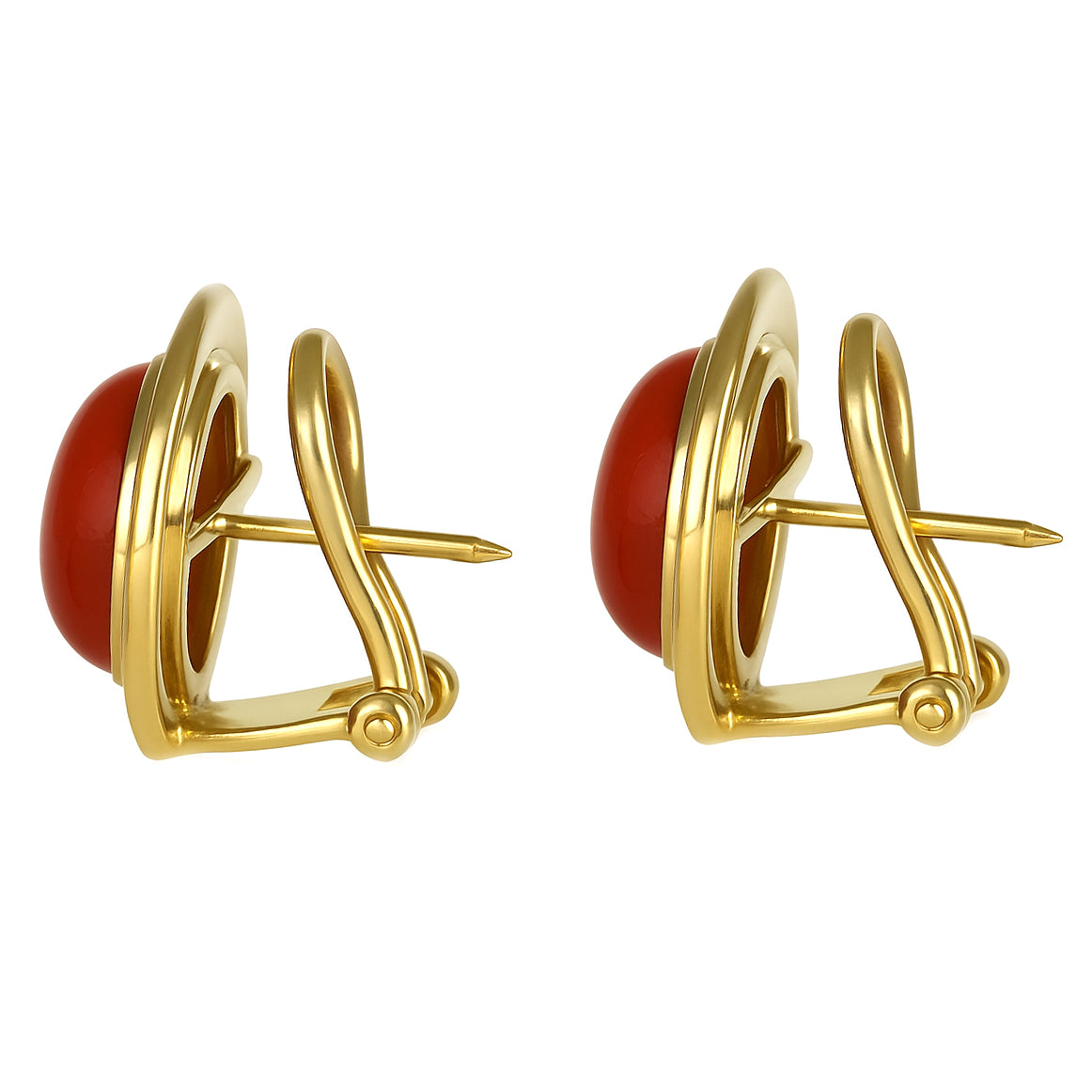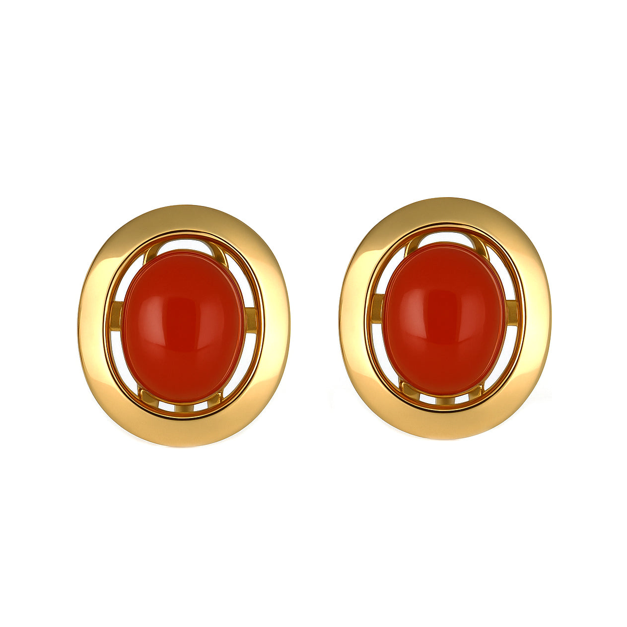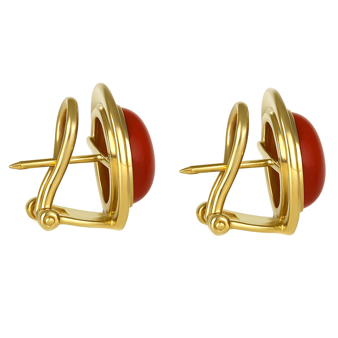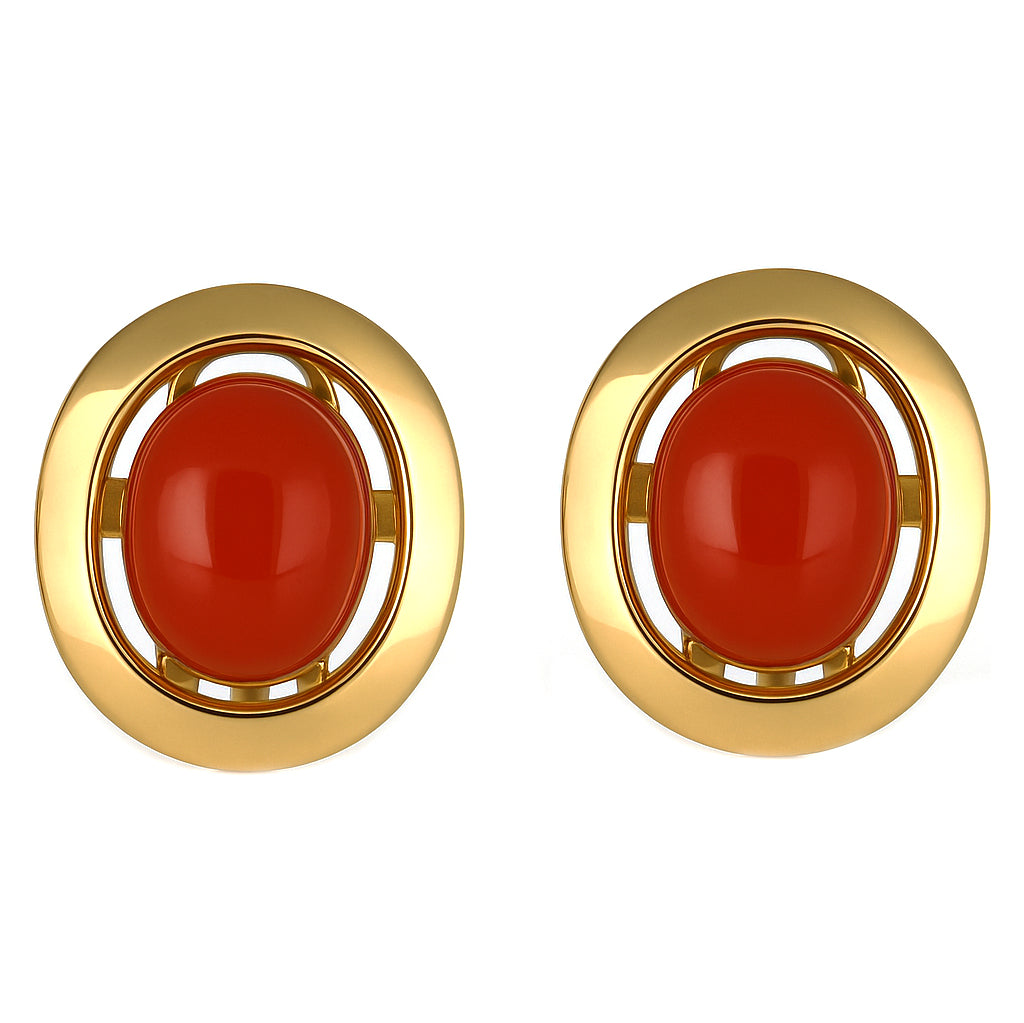 Orecchini in Oro giallo 18 carati con n 2 Coralli rossi del mediterraneo da 8.36 x 10.47 mm