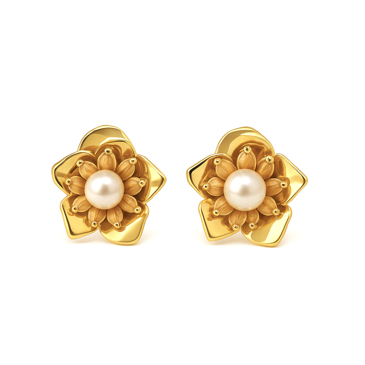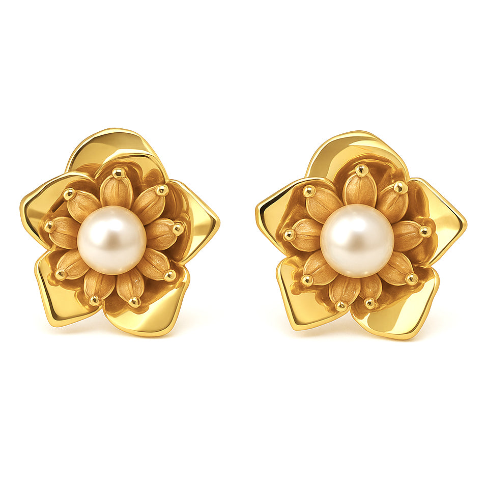 Orecchini in Oro Giallo 18 carati con n 2 Perle Akoya da 6.50 mm