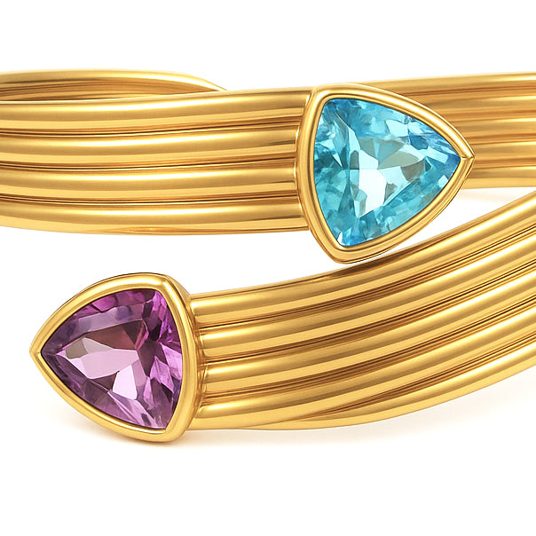 Bracciale in Oro Giallo 18 carati con n 1 Topazio da 6.50 Ct e n 1 Ametista da 6.50 Ct