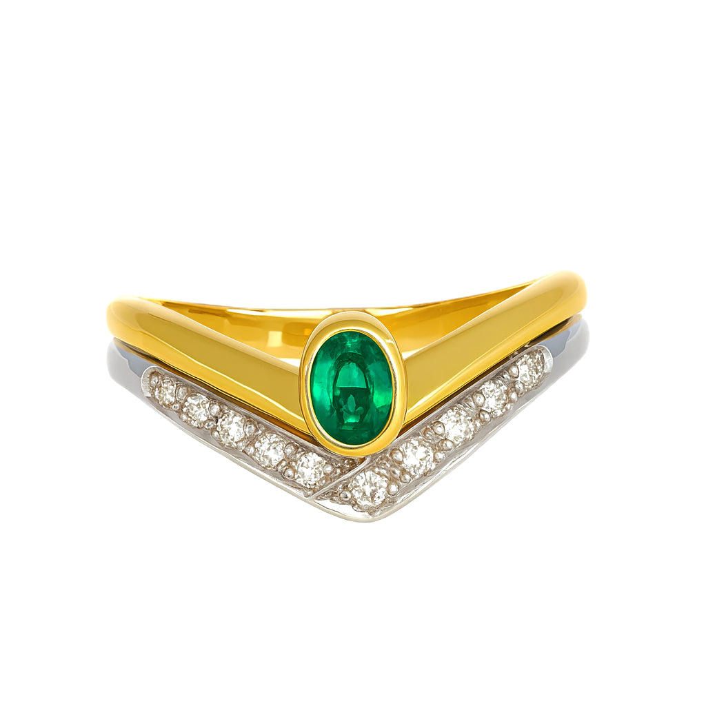 Anello - 18 carati Oro bianco, Oro giallo - 0.32ct. tw. Smeraldo - Diamante