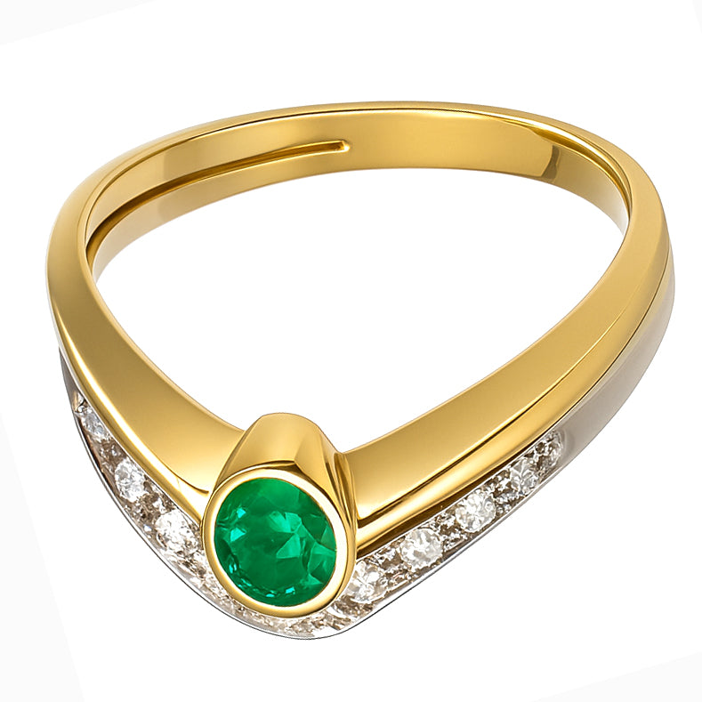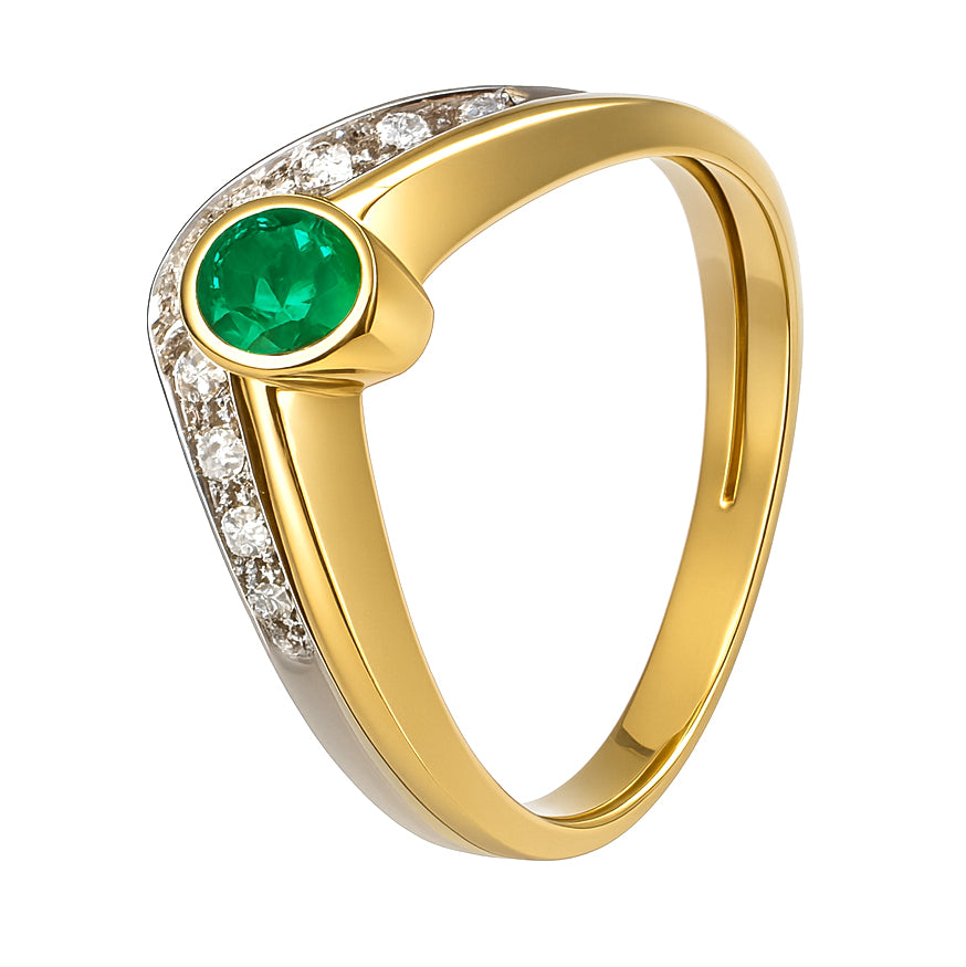 Anello in Oro giallo, Oro Bianco 18 carati con n 1 Smeraldo da 0.18 Ct e n 9 Diamanti da 0.135 Ct tot