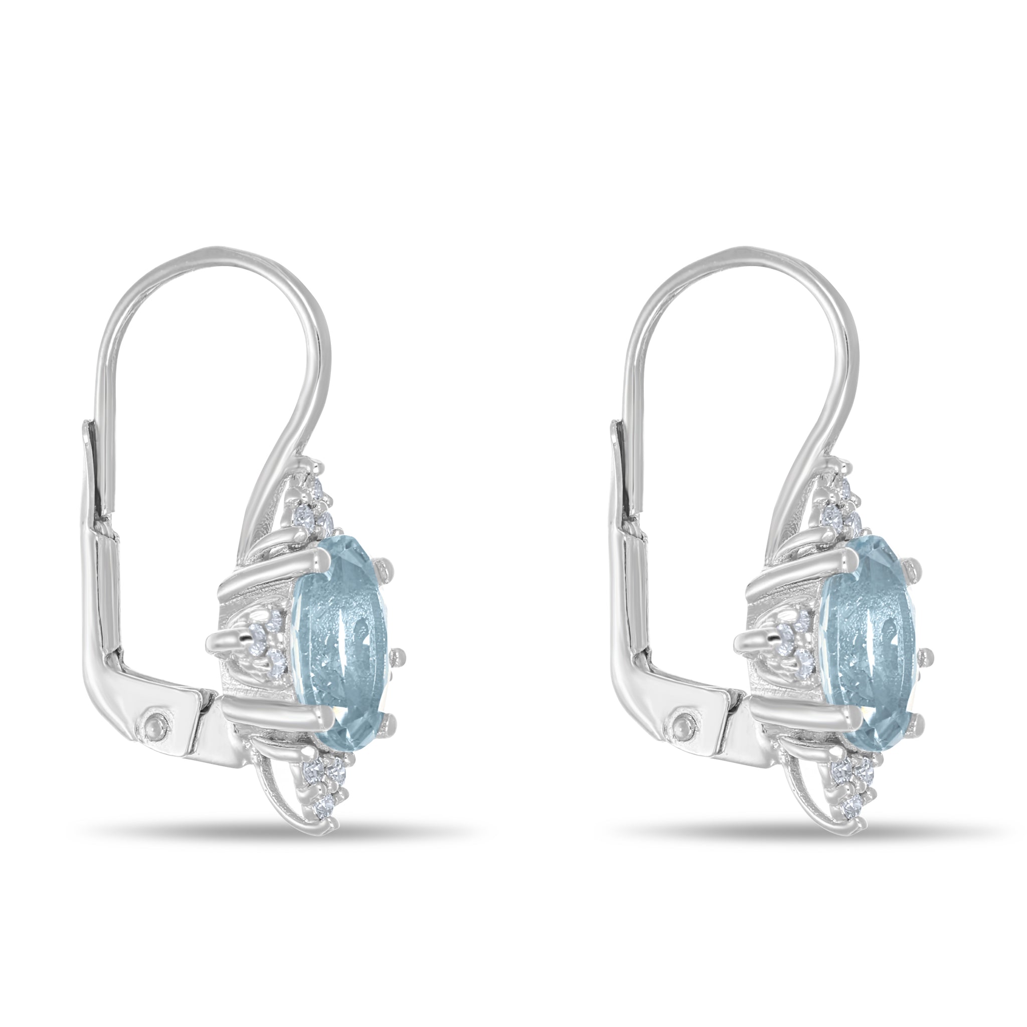 Orecchini in oro bianco 18 carati con n 2 Acquamarina 2.18 Ct tot e n 24 Diamanti da 0.24 Ct tot