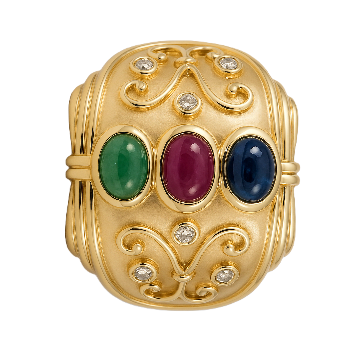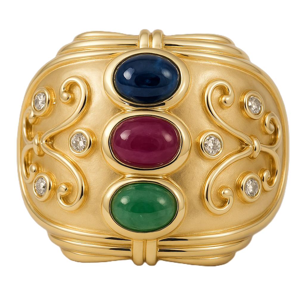 Anello - 14 carati Oro giallo, Zaffiro - Rubino - Smeraldo - Diamanti - 1.02ct. tw.