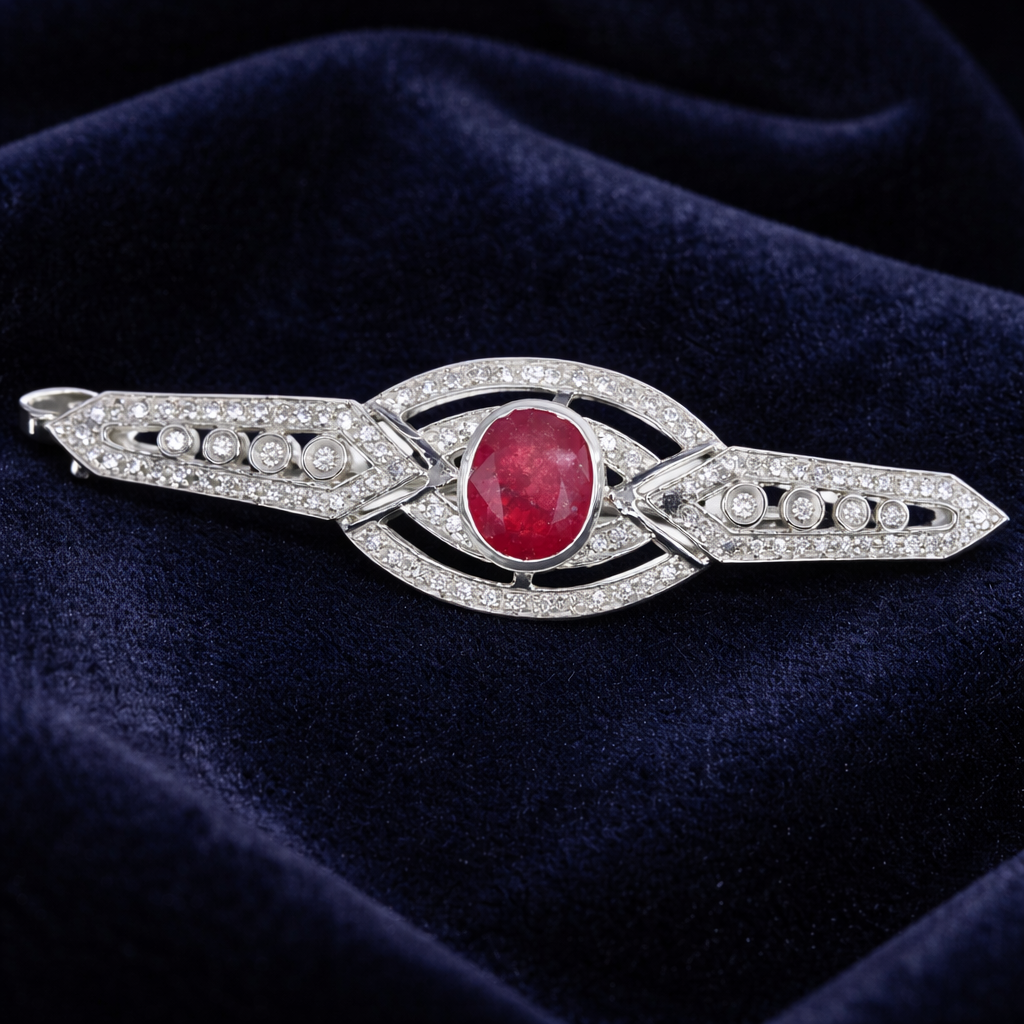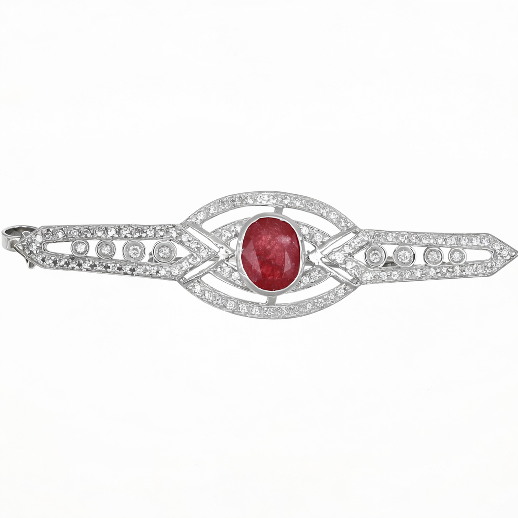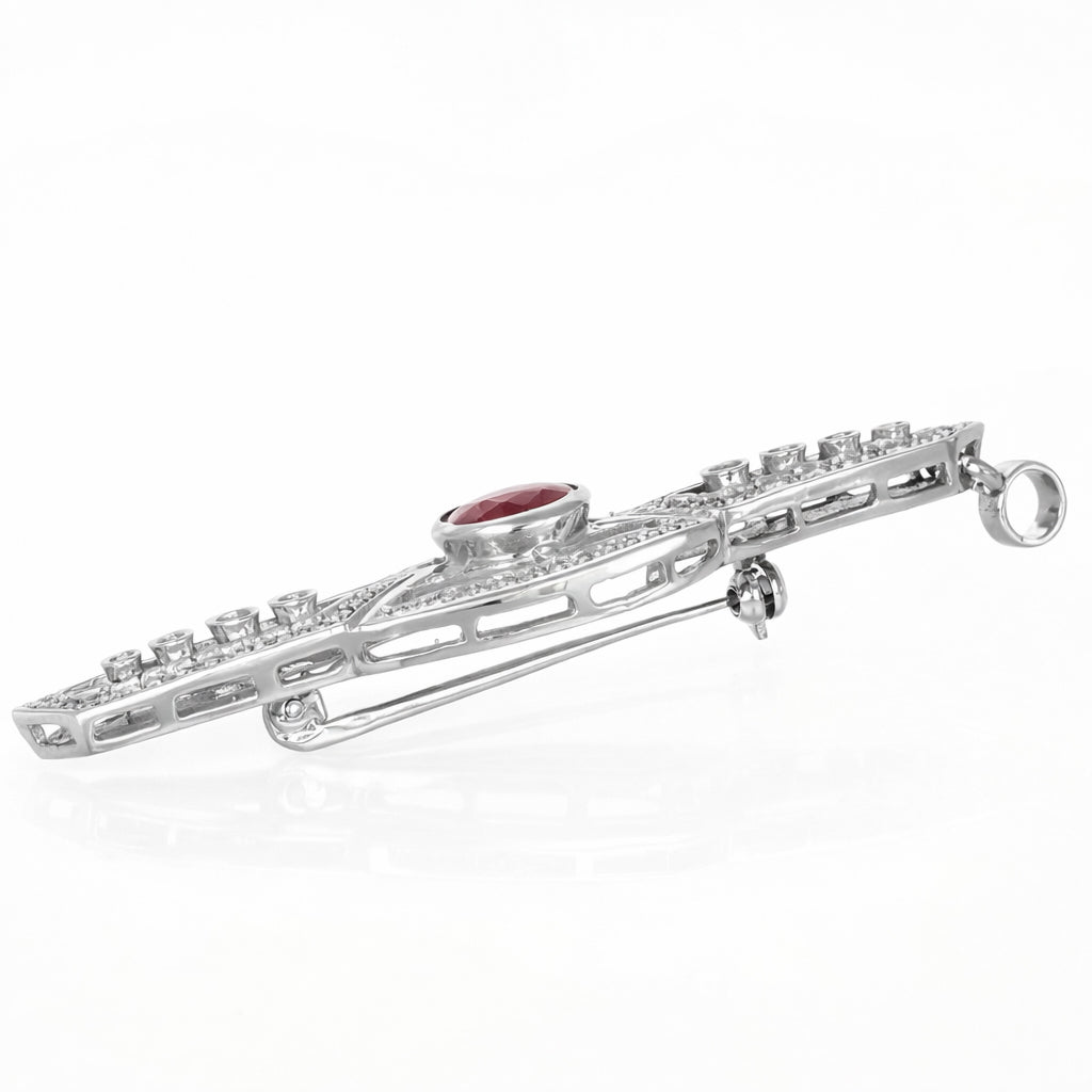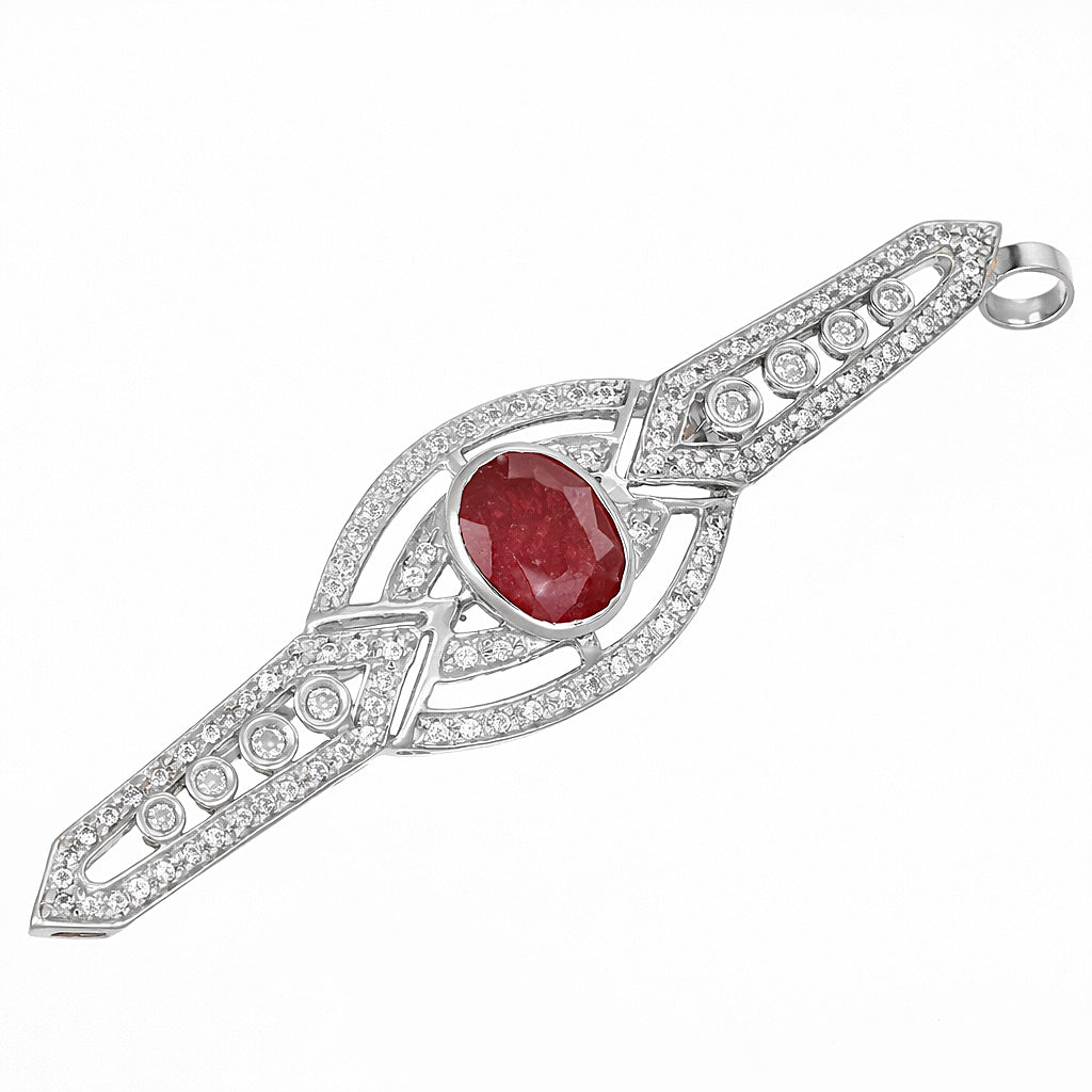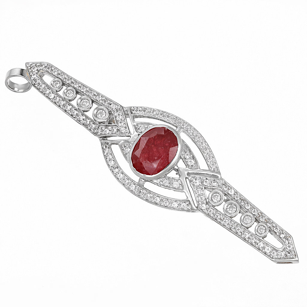 Spilla / Ciondolo in oro bianco 18 carati con n 1 Rubino da 2.75 Ct e n 96 Diamanti da 1.04 Ct tot