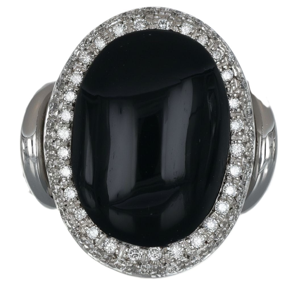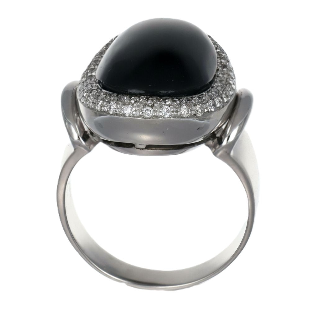 Anello in Oro Bianco 18 carati con n 1 Onice da 11.00 Ct e n 60 Diamanti da 0.60 Ct tot