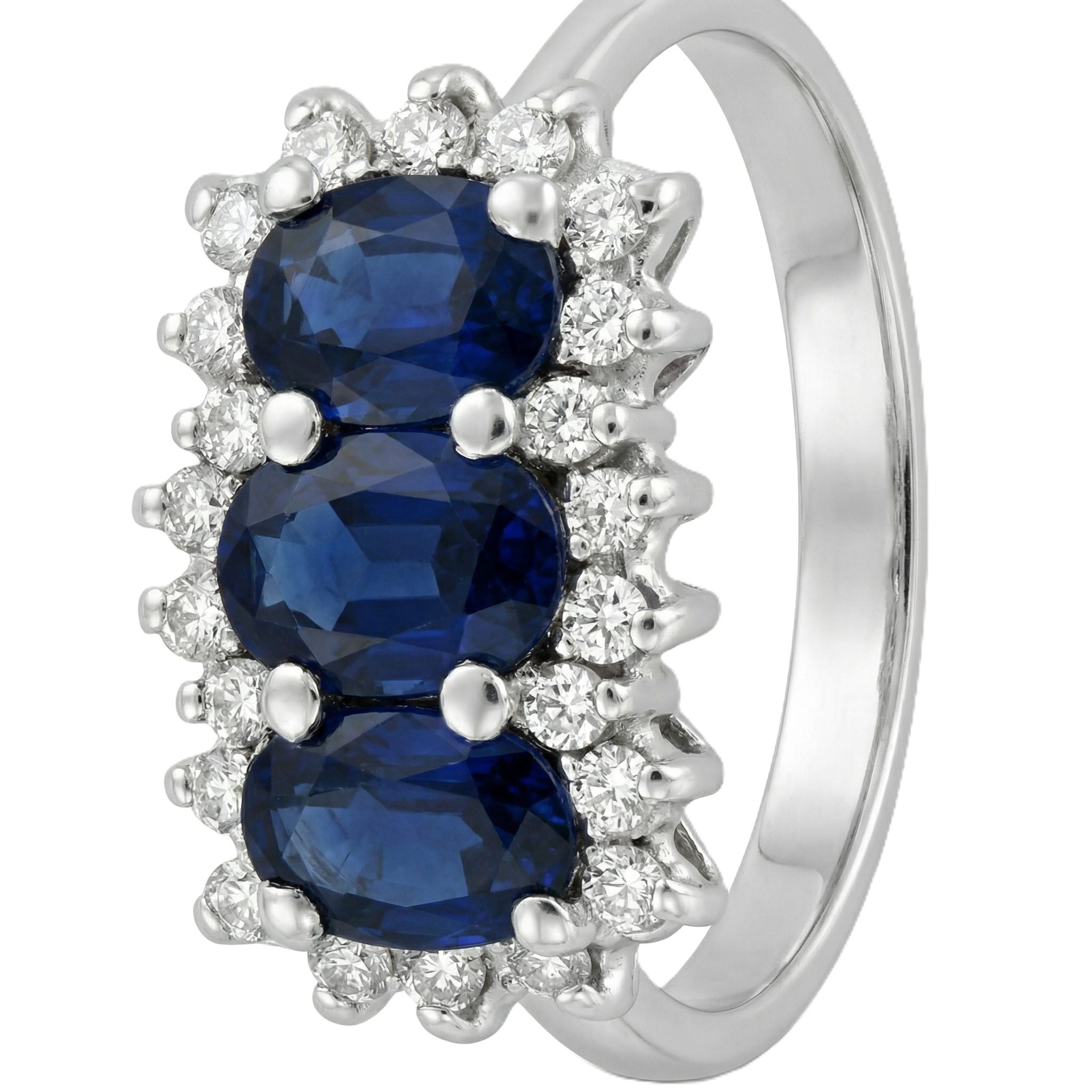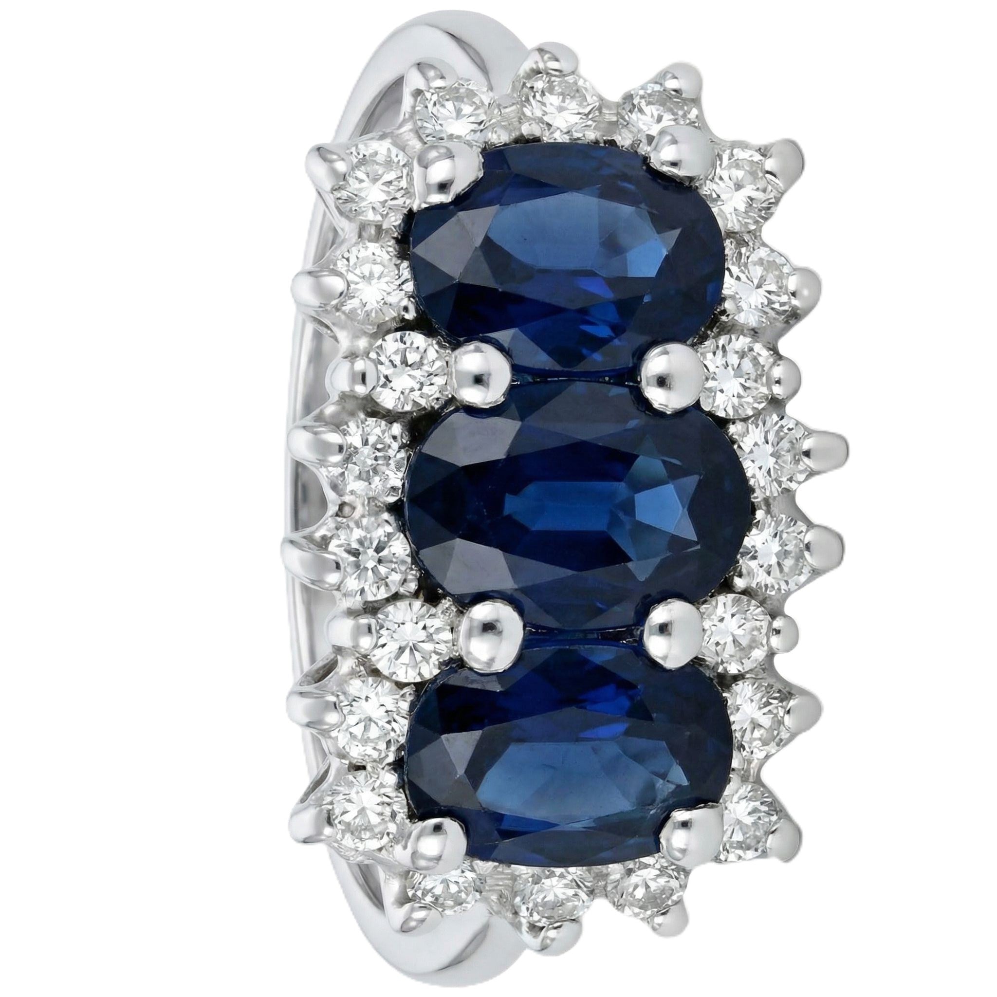 Anello in Oro Bianco 18 carati con n 3 Zaffiri da 3.51 Ct tot en 22 Diamanti da 0.22 Ct tot