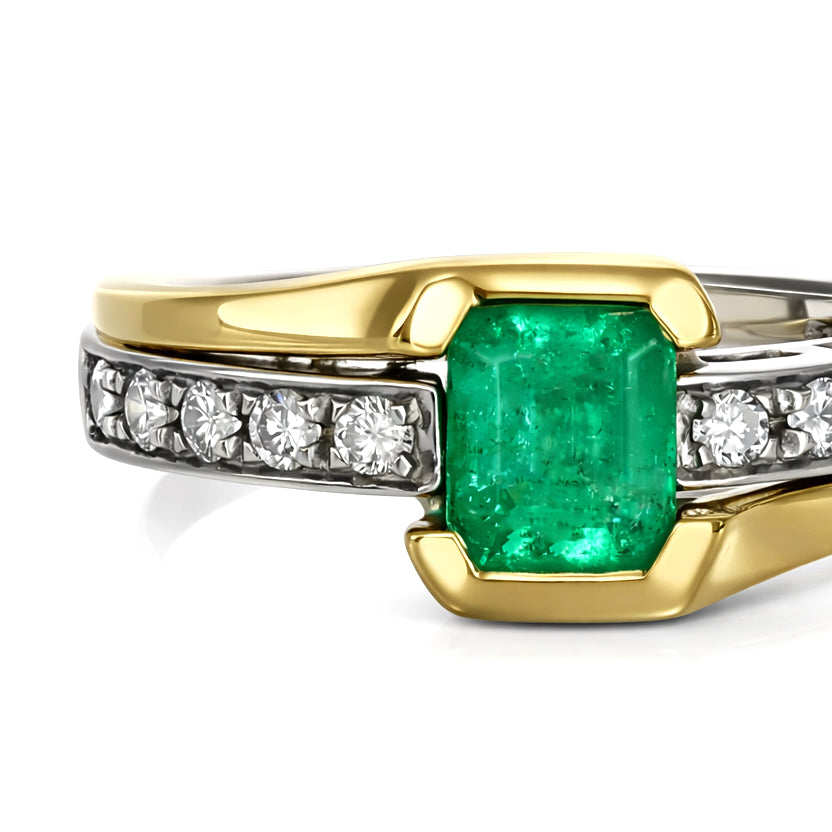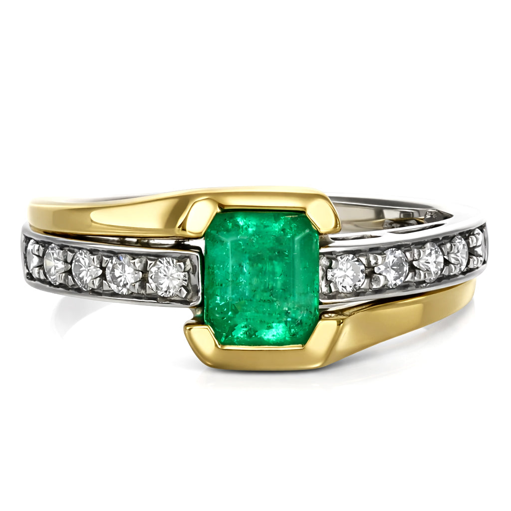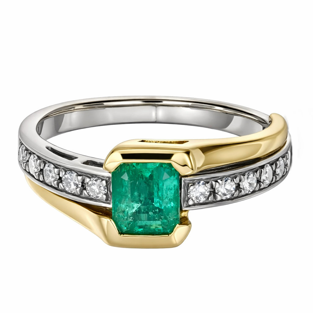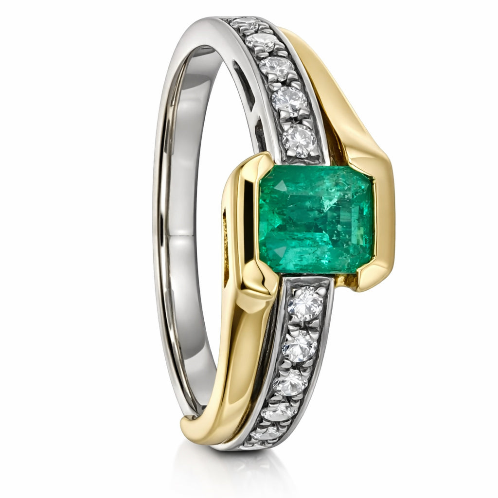 Anello - 18 carati Oro bianco, Oro giallo Smeraldo - Diamante