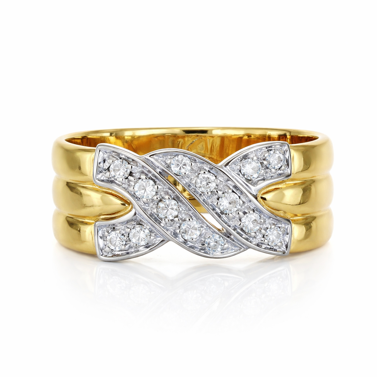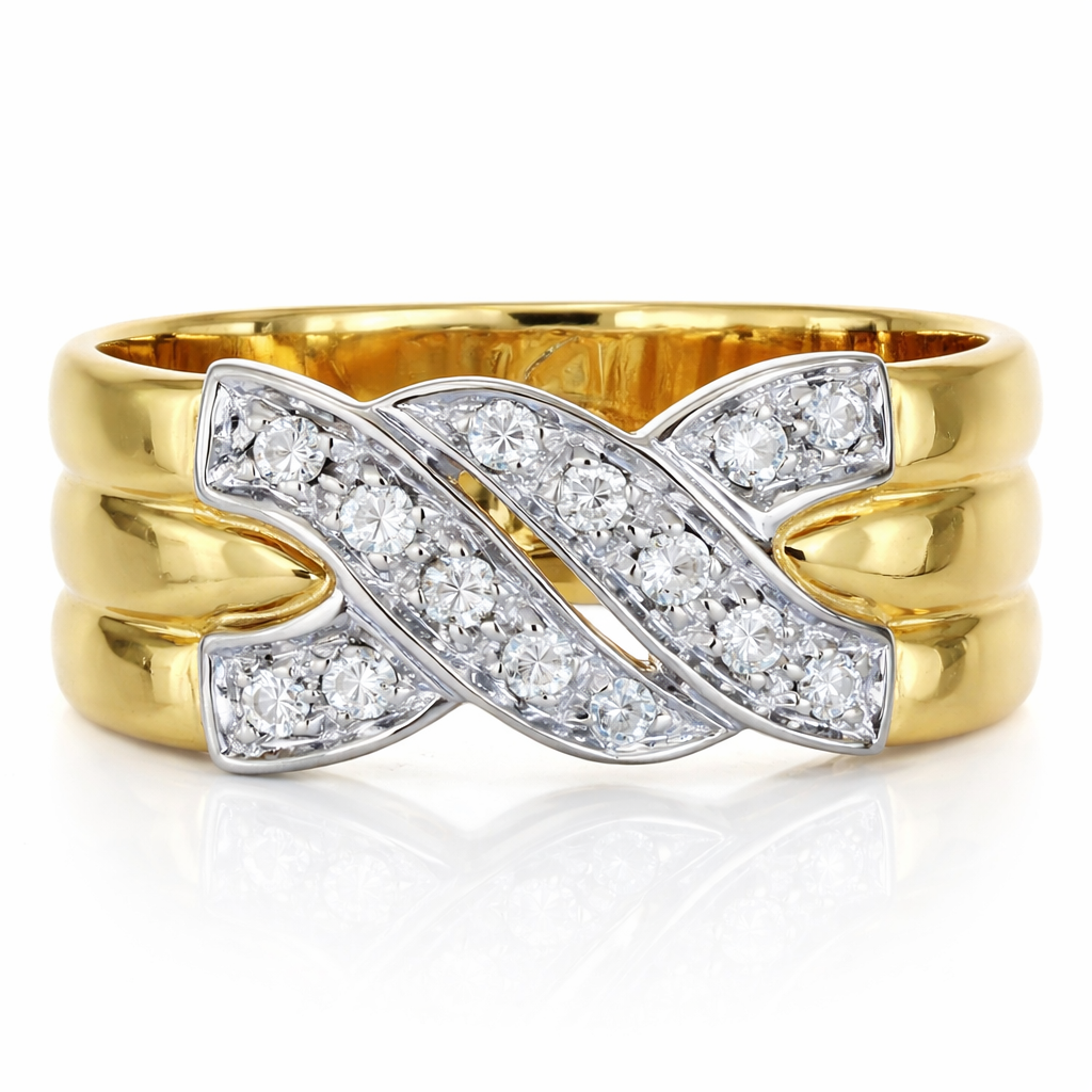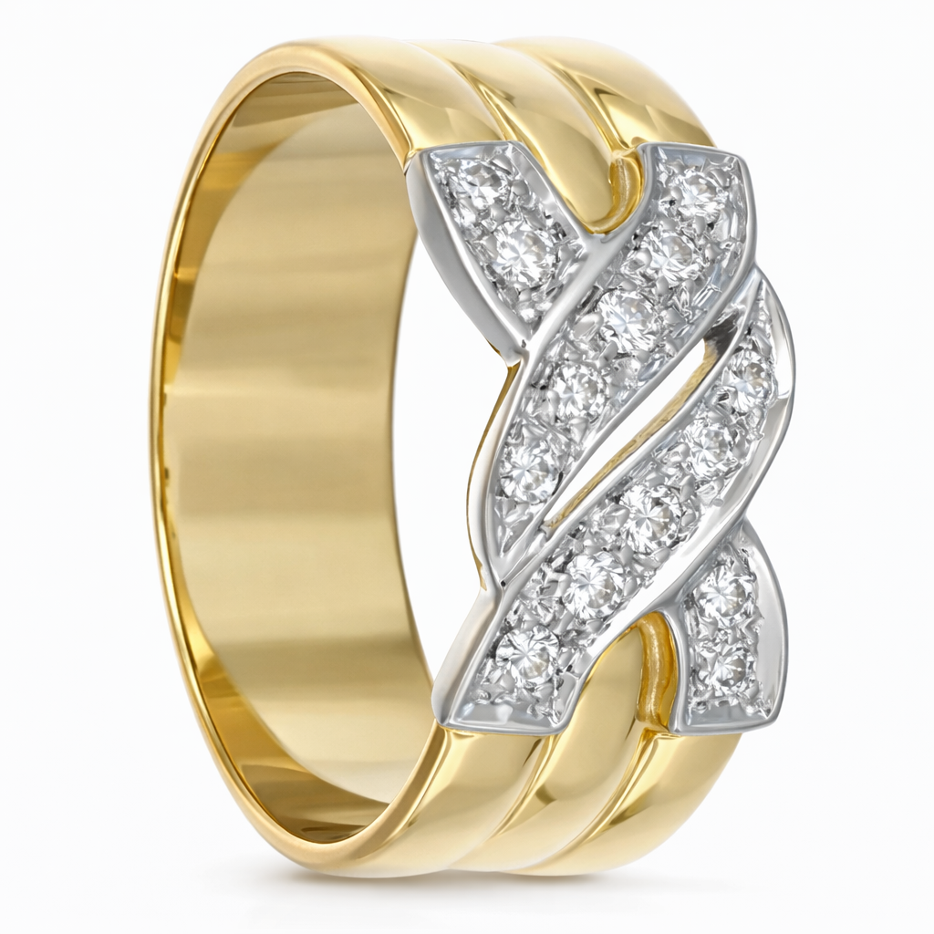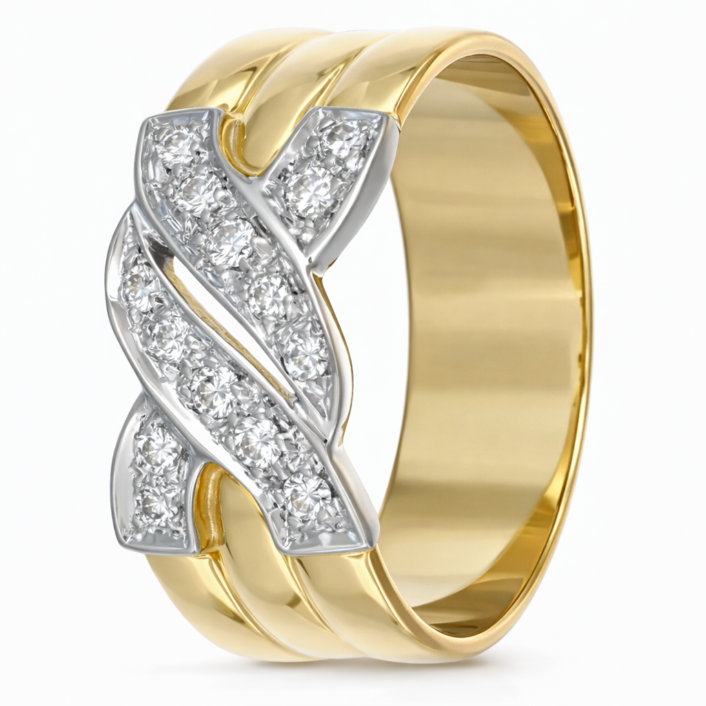 Anello in oro giallo oro bianco 18 carati con n 14 Diamanti da 0,28 Ct tot