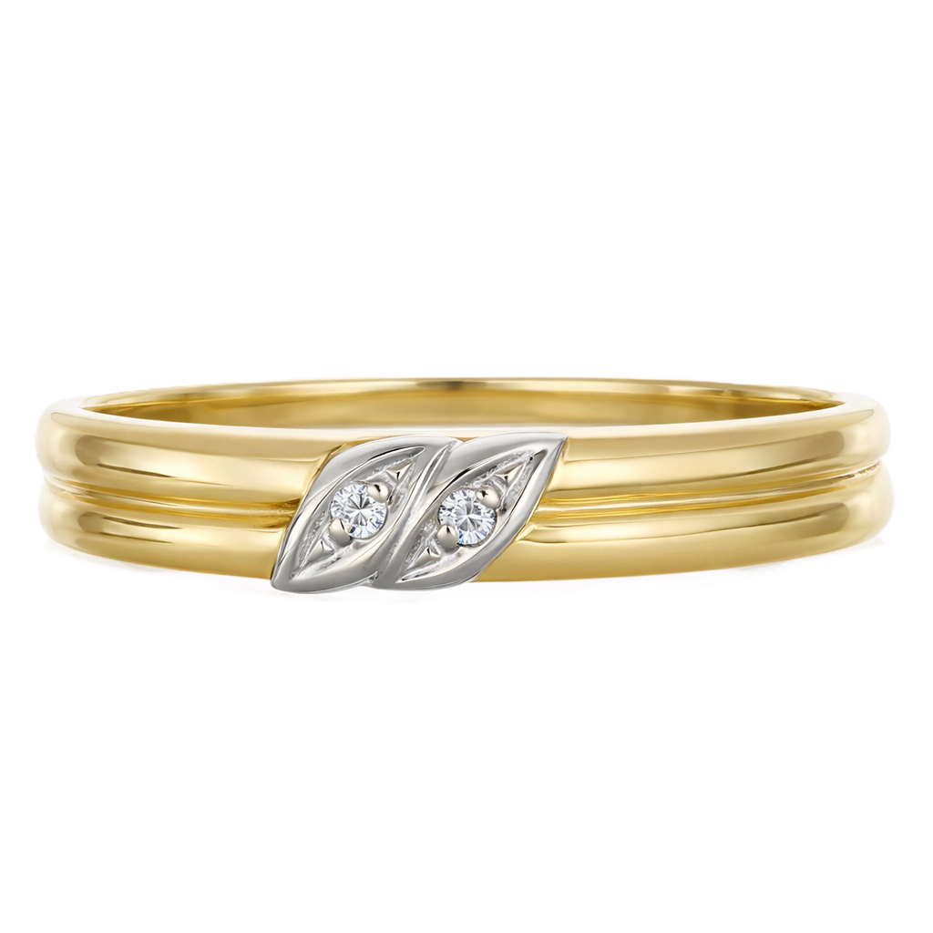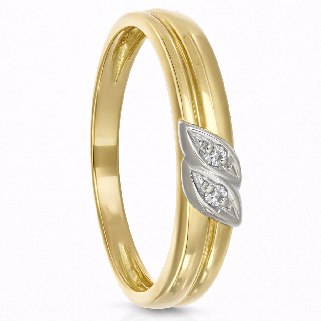 Anello in oro giallo oro bianco 18 carati con n 2 Diamanti da 0,03 Ct tot