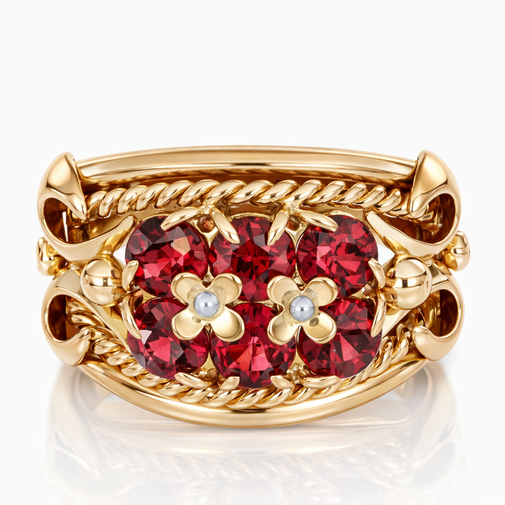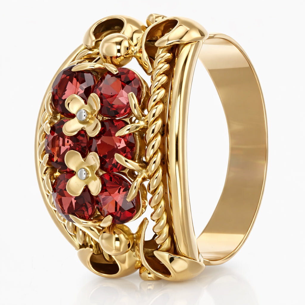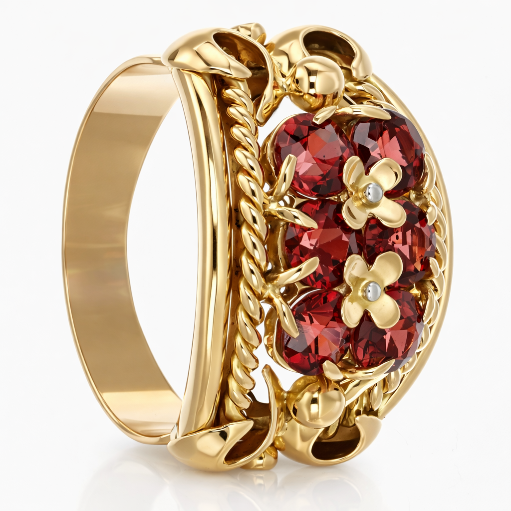 Anello in oro giallo 18 carati con n 6 Granati da 1.80Ct tot