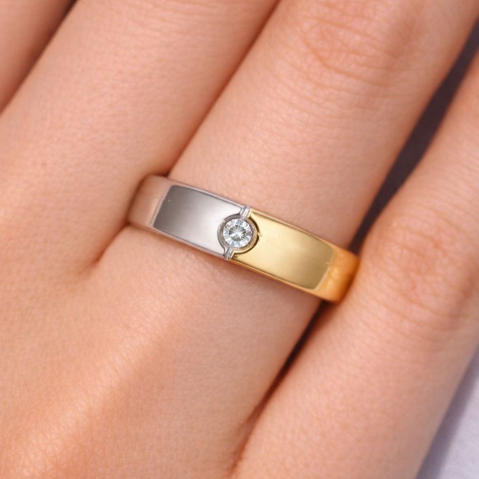 Anello in Oro Giallo ed Oro Bianco  18 carati  con n 1 Diamanti da 0.03 Ct totali