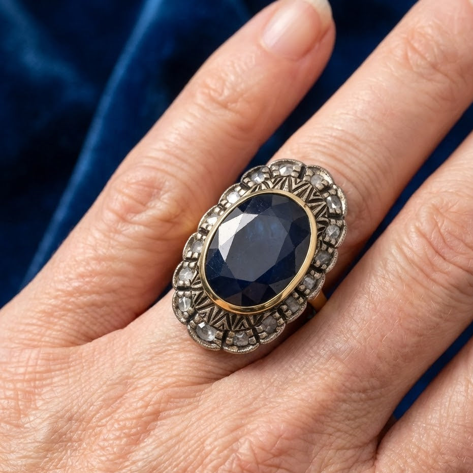 14 carati Oro giallo, Argento 925 - Anello - 10.00 ct Zaffiro - Ct 0.40 Diamanti